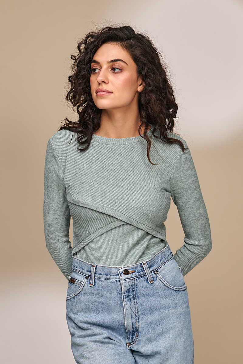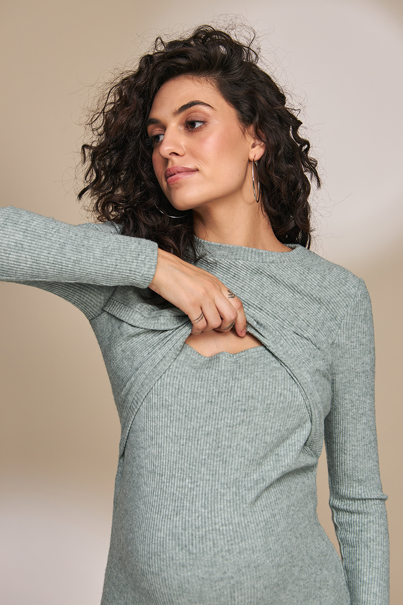 Теплий джемпер для вагітних та годуючих з теплого трикотажу в рубчик.