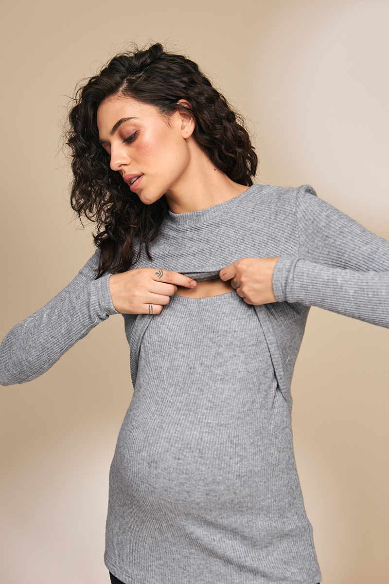 Теплий джемпер для вагітних та годуючих з теплого трикотажу в рубчик.