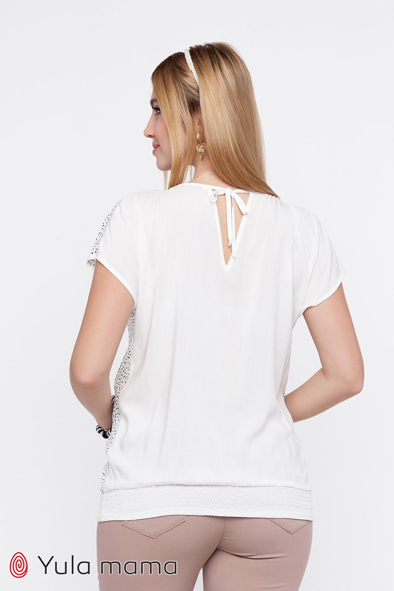 Блузка оверсайз для беременных и кормящих из комбинации однотонного и принтованного штапеля.