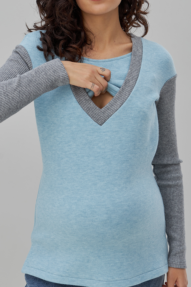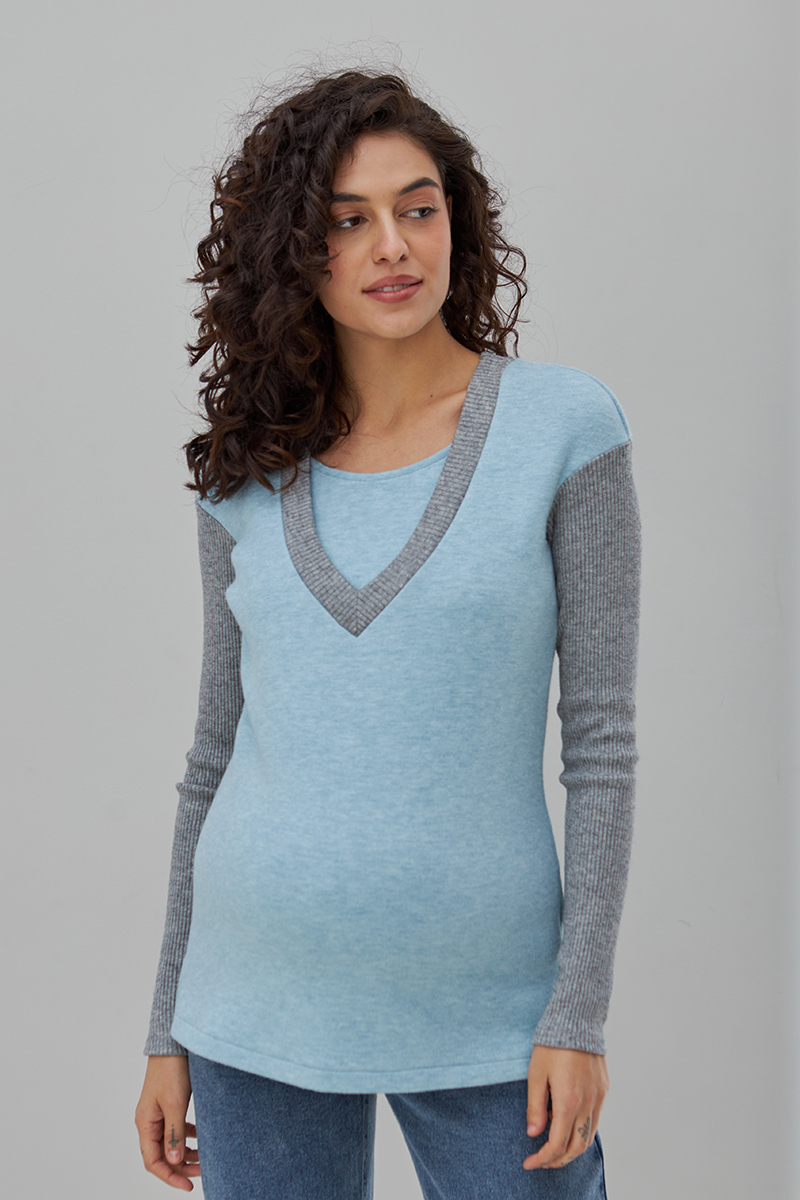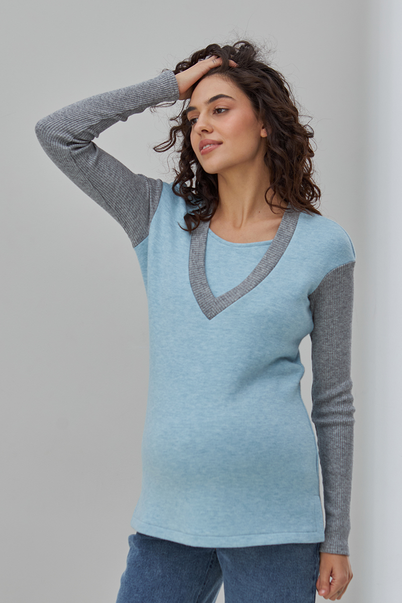 Молодіжний джемпер для вагітних та годуючих з теплого трикотажу з компаньйоном-гумкою.