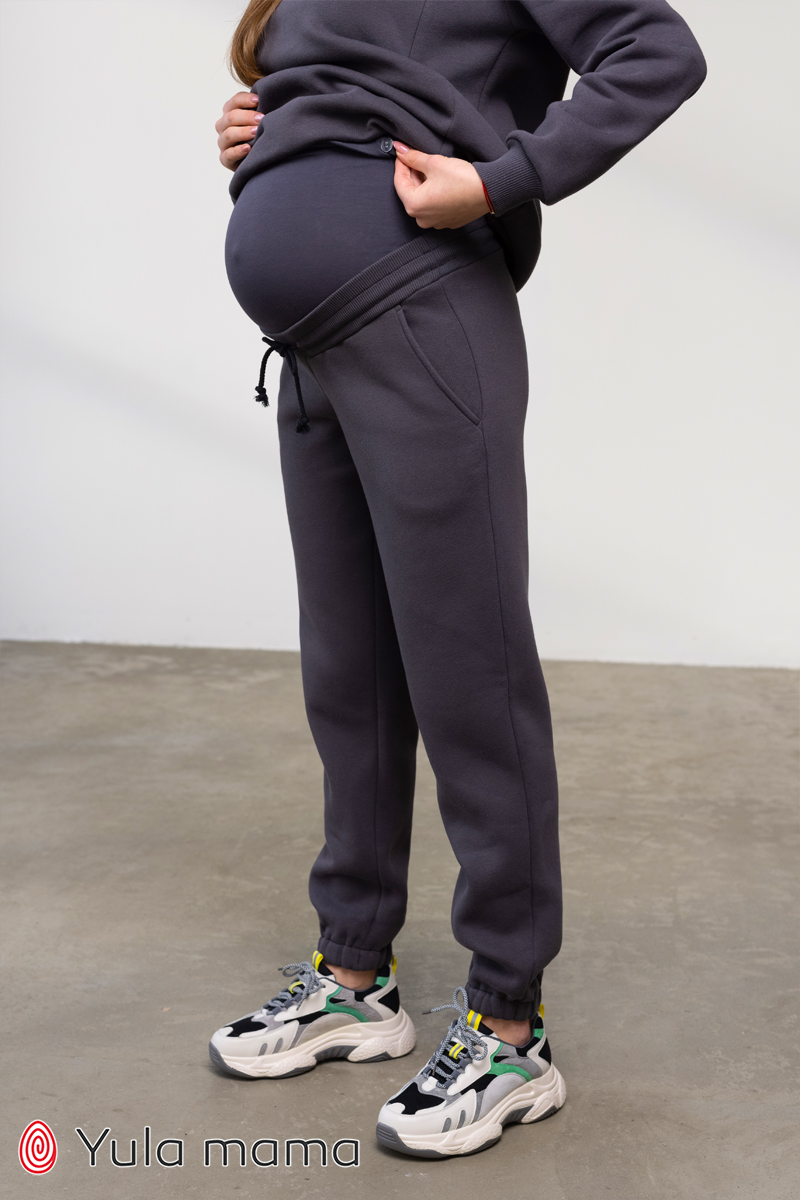 Теплі штани-джогери для вагітних із щільного трикотажу з начосом.