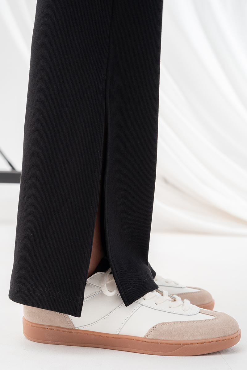 Прямі штани з розрізами для вагітних із трикотажу в рубчик.