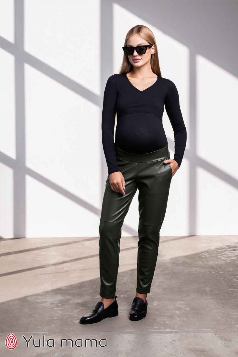 Стильні штани МОМ для вагітних із еко-шкіри на замші.
