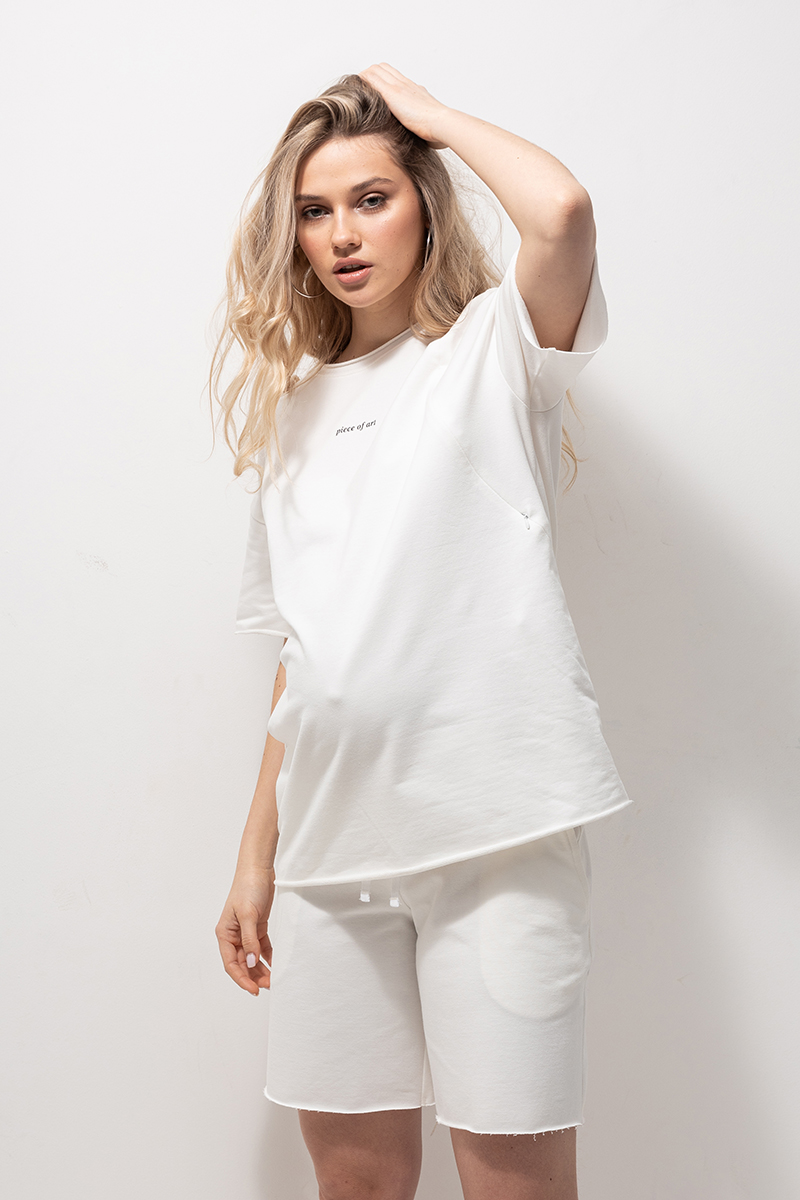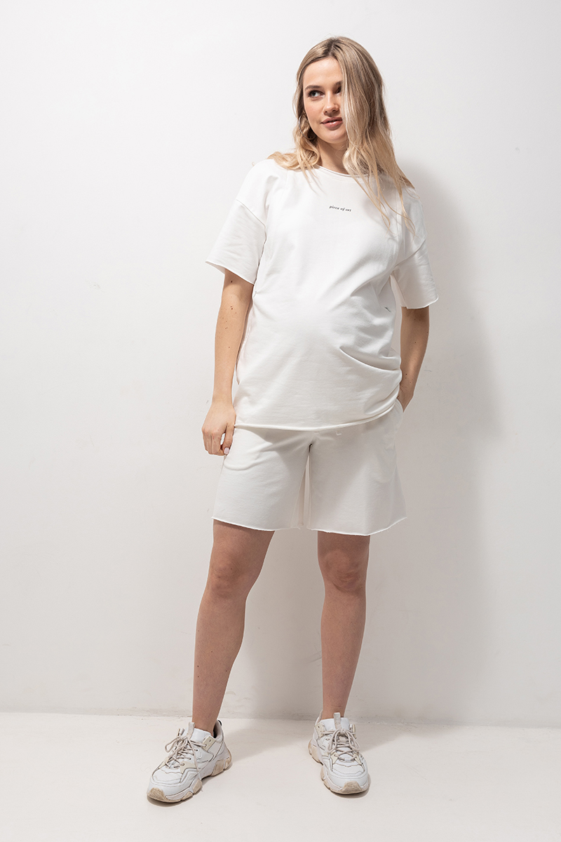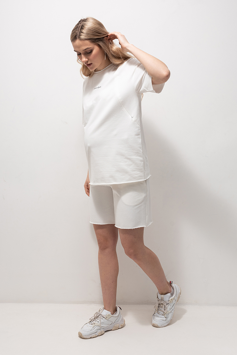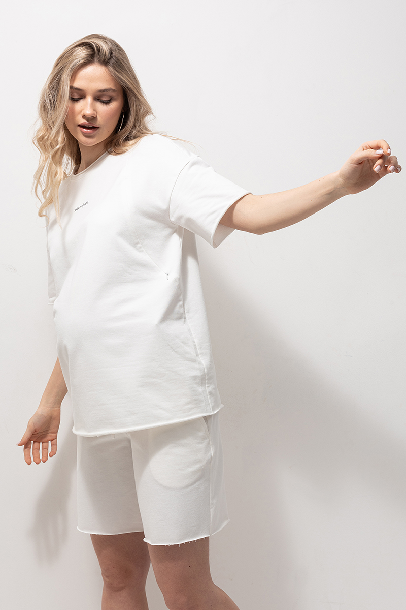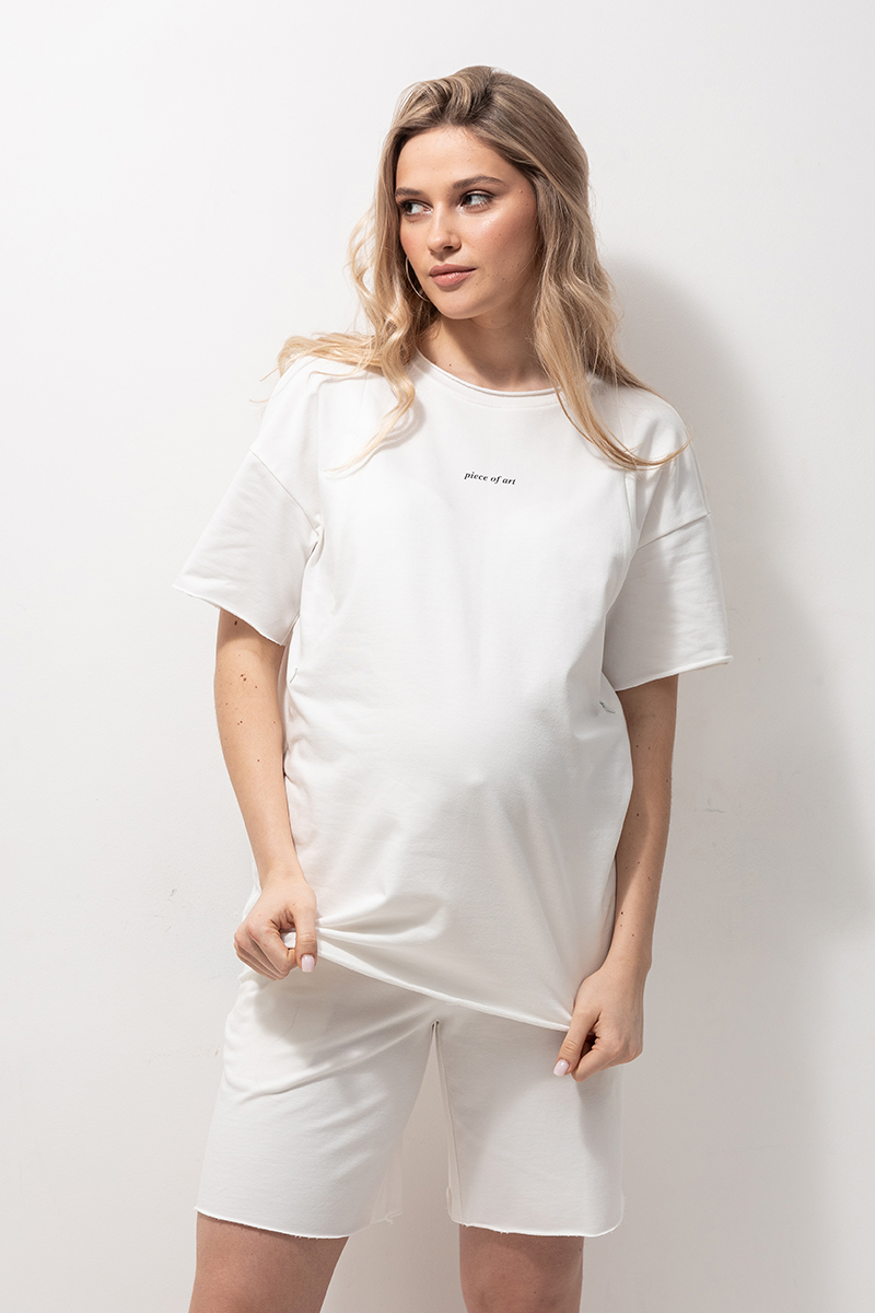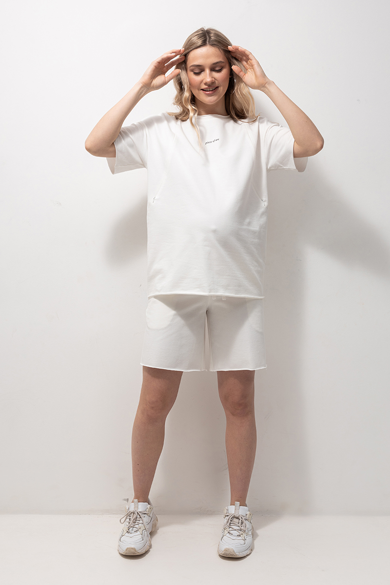 Трендовий бавовняний костюм з футболки з шортами для вагітних та годуючих.