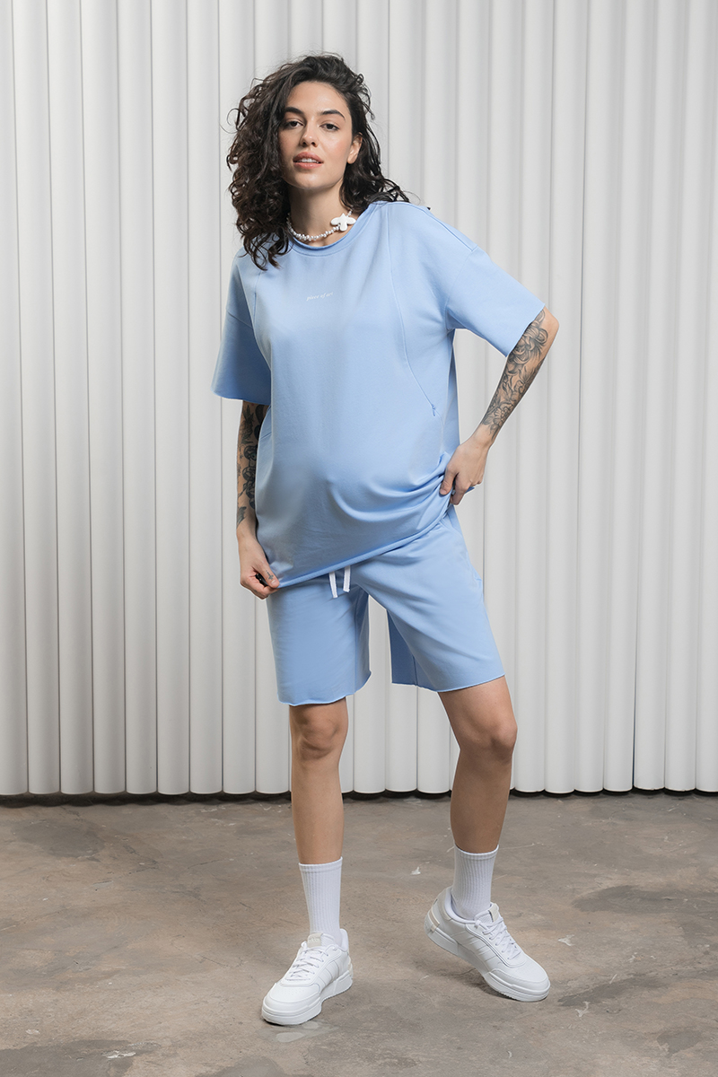 Трендовий бавовняний костюм з футболки з шортами для вагітних та годуючих.
