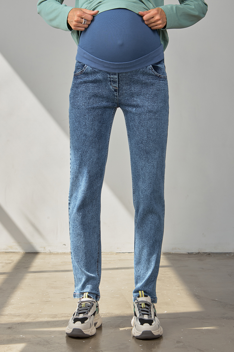 Стильні джинси Mom для вагітних зі сніжним ефектом.