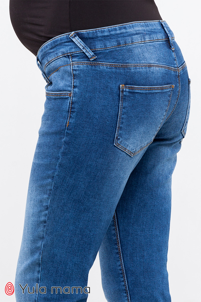 Тип пояса - комбинированный: джинсовый с регулировкой под животик + высокий трикотажный пояс из микрофибры, что позволяет носить эту модель во время и после беременности (предварительно убрав высокий пояс).