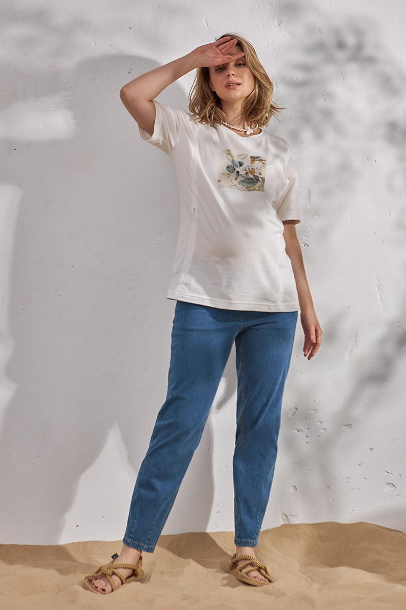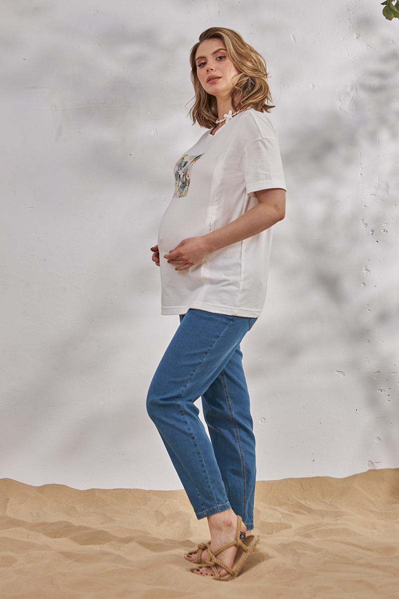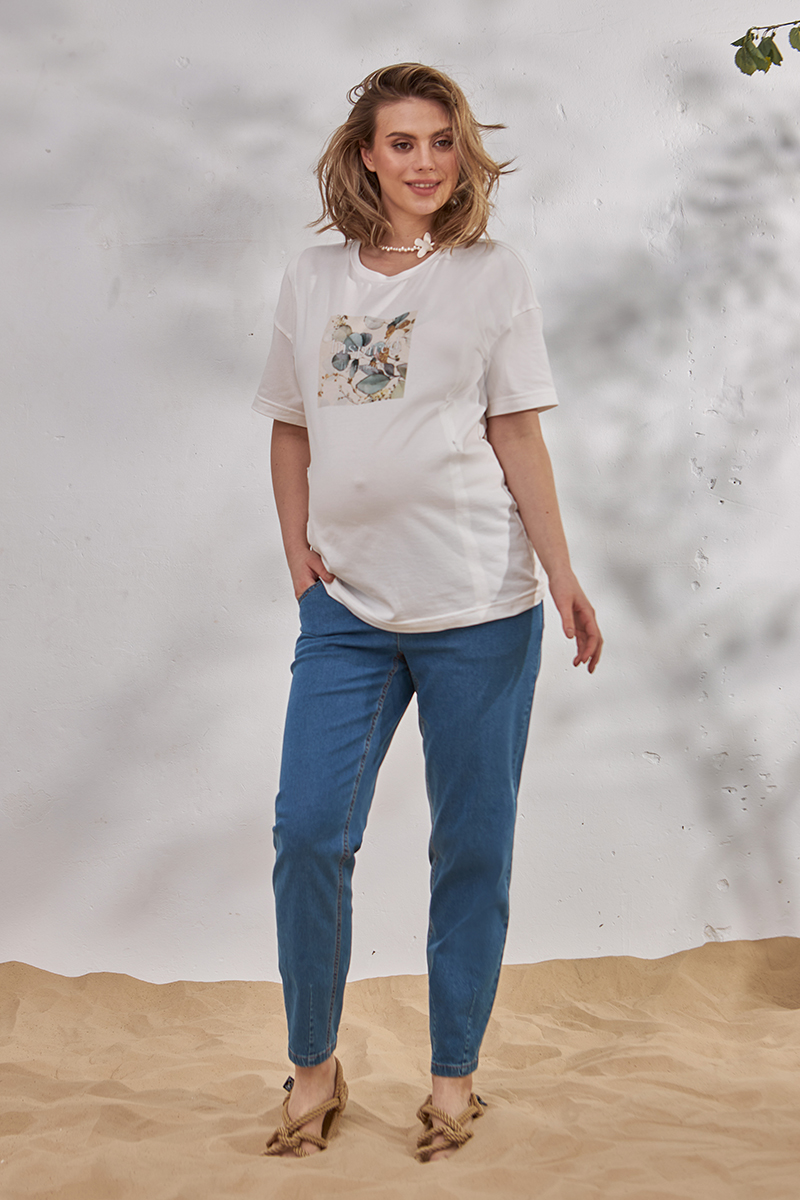 Вільні джинси МОМ для вагітних із тонкого джинсу.