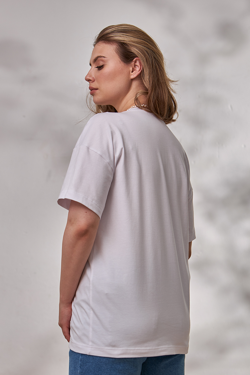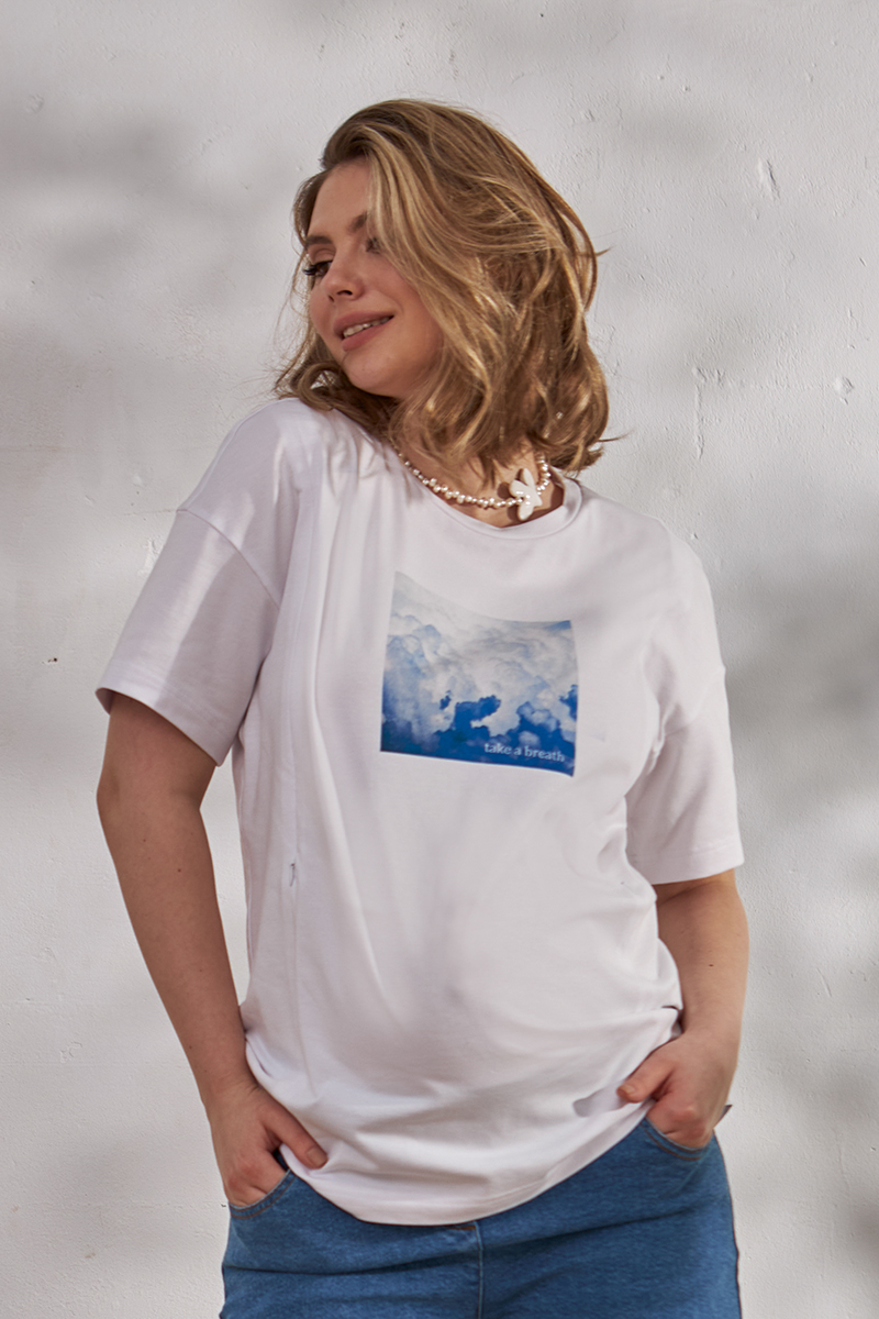 Стильна футболка для вагітних та годуючих з яскравим принтом.