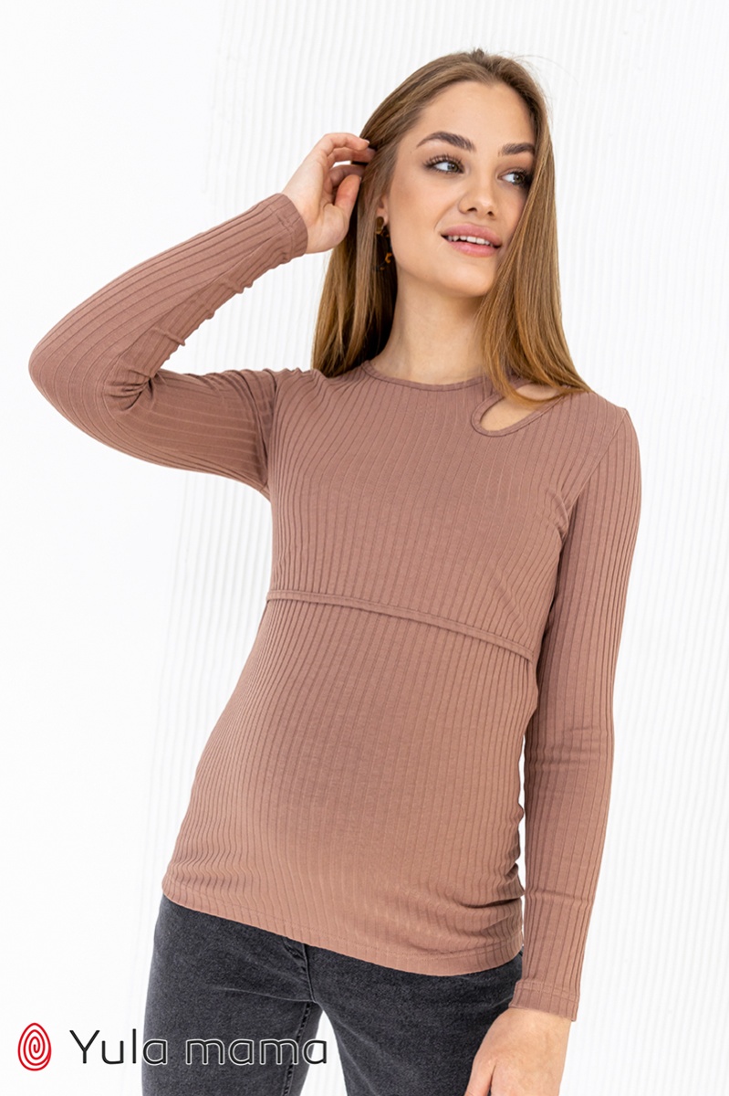 Облягаючий трендовий лонгслів для вагітних і годуючих з асиметричним вирізом на плечі.
