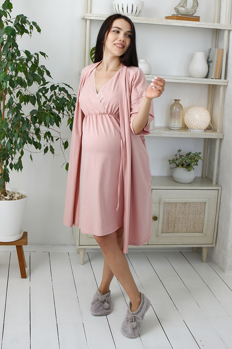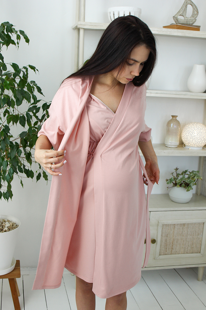 Халат-кімоно з кишенями для вагітних та годуючих мам із трикотажу.