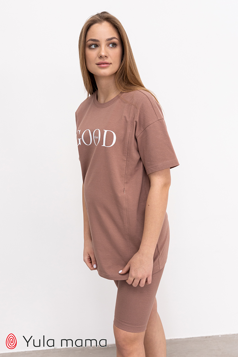 Трендовий бавовняний костюм з велосипедками для вагітних та годуючих.