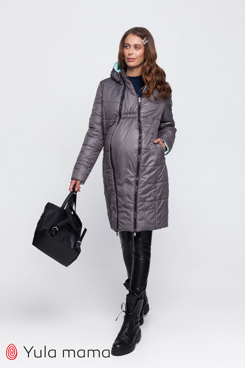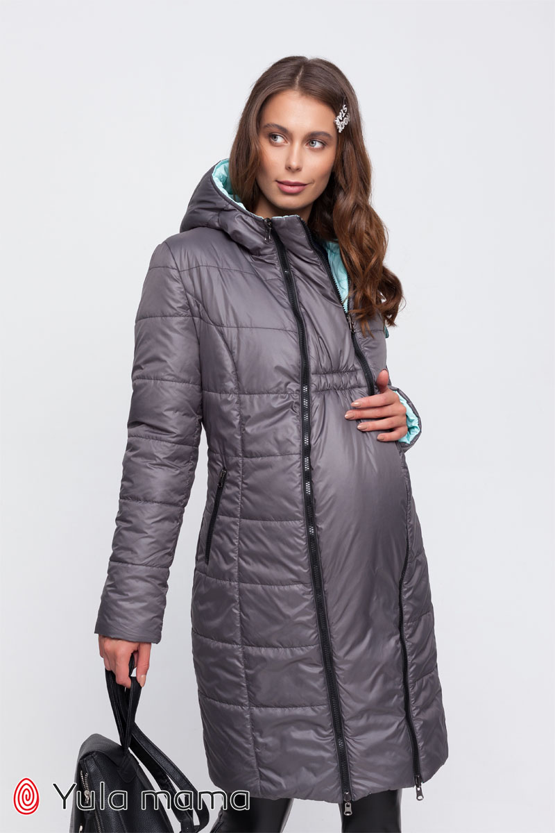 Молодежное двухстороннее пальто для беременных из плащевки с легким блеском на европейскую зиму.