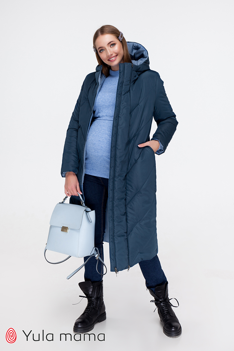 Стильное зимнее пальто для беременных из плотной плащевки двухстороннее.