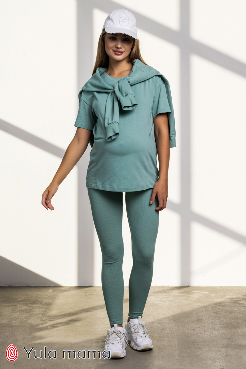 Лосини для вагітних із трикотажу рубчик довгі, високий пояс на животик.