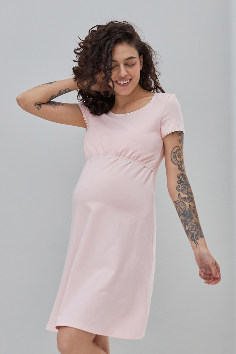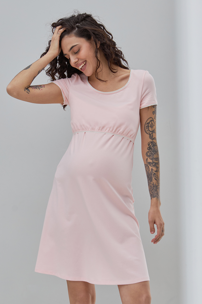 Комфортна нічна сорочка для вагітних і годуючих з бавовняного трикотажу.