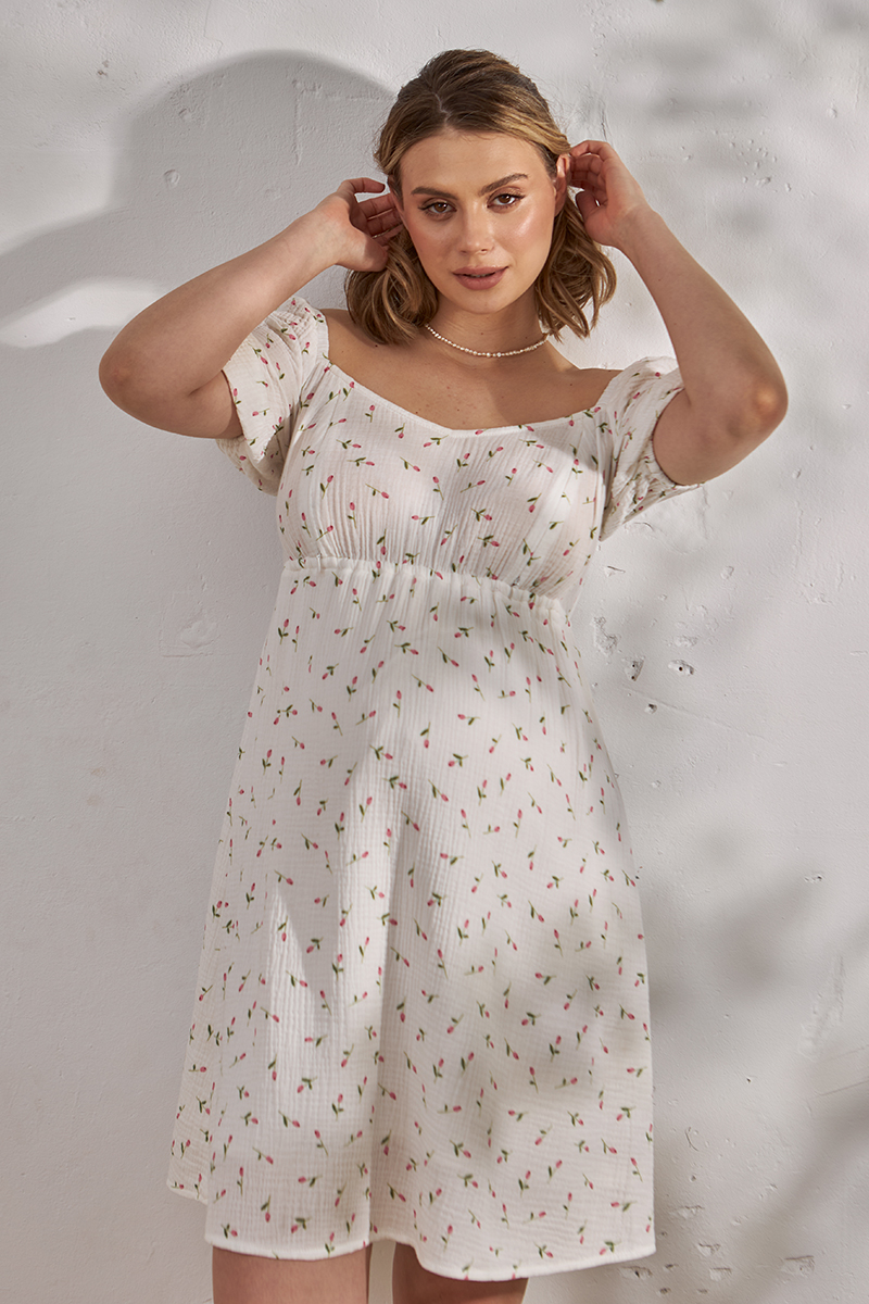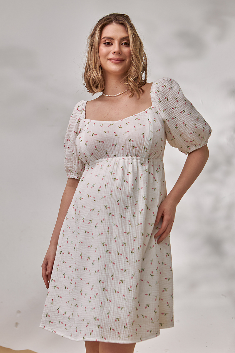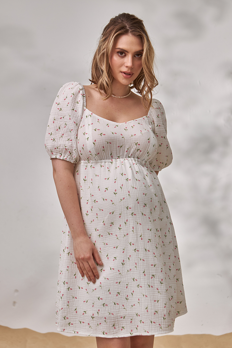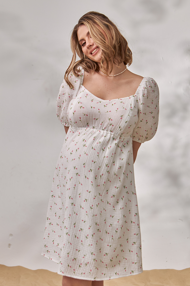 Сукня для вагітних та годуючих з акцентними рукавами-буфами.