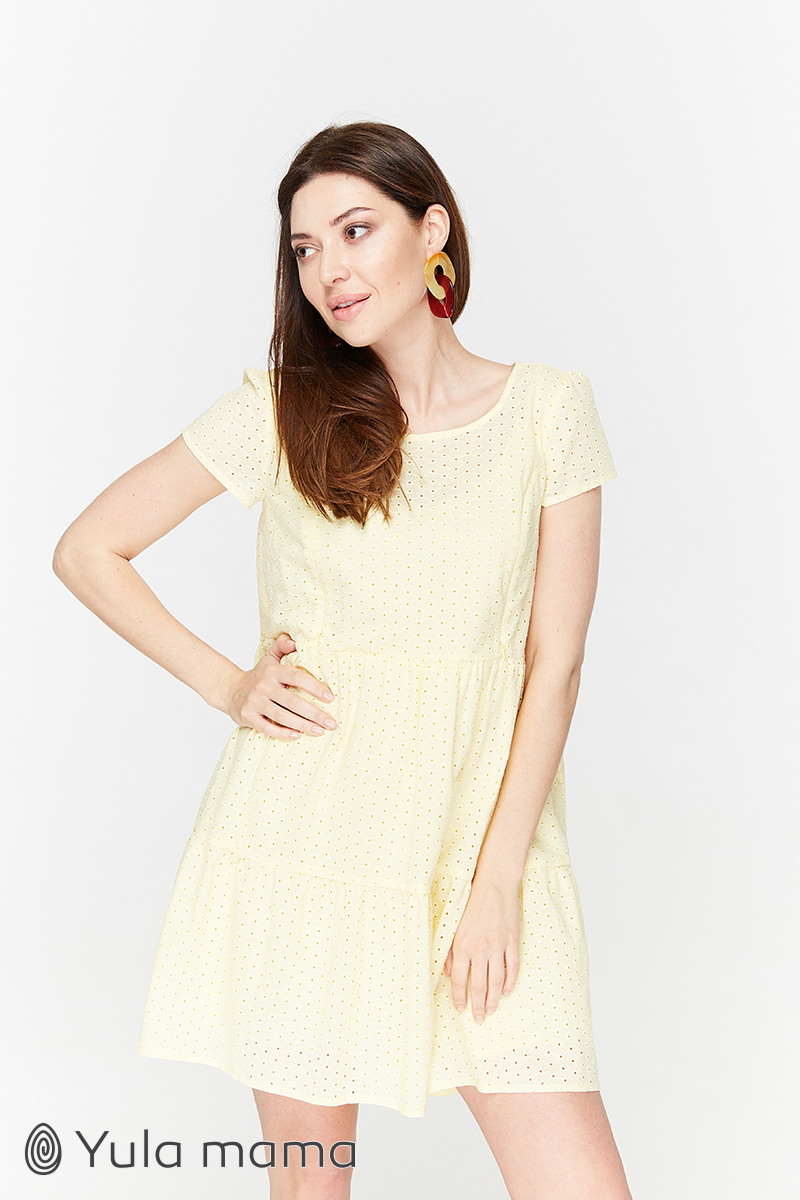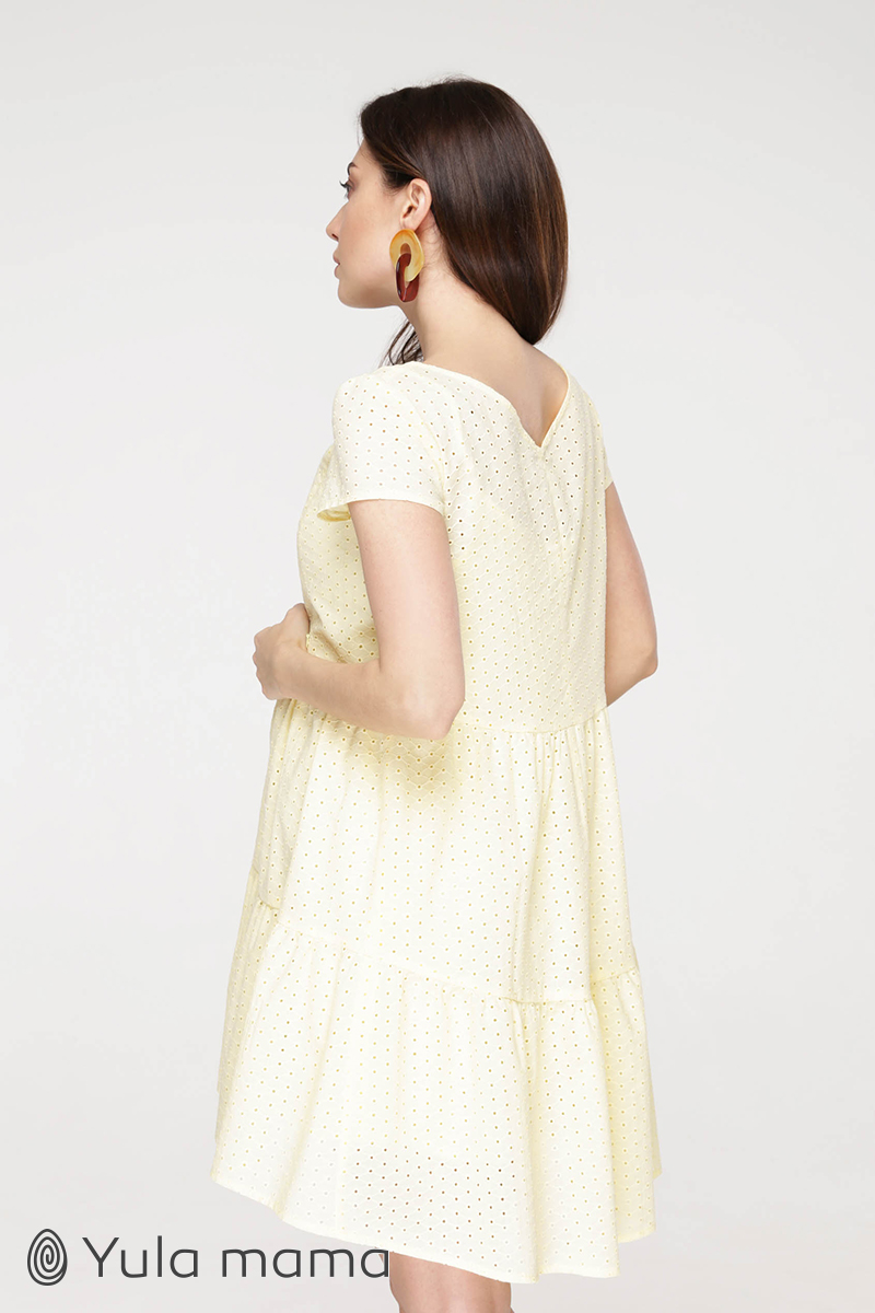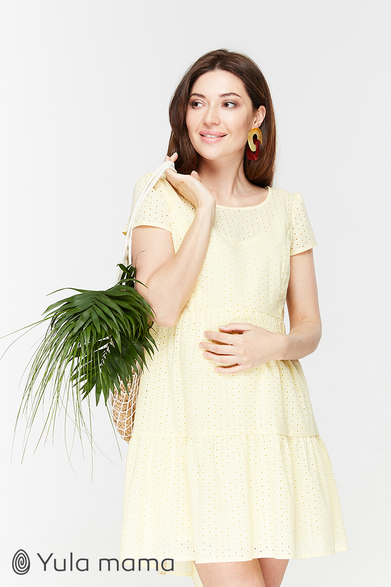 Платье для беременных и кормящих из батиста-прошвы на подкладке.
