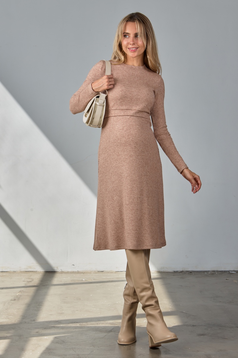Жіноча сукня для вагітних та годуючих з теплого трикотажу в рубчик.