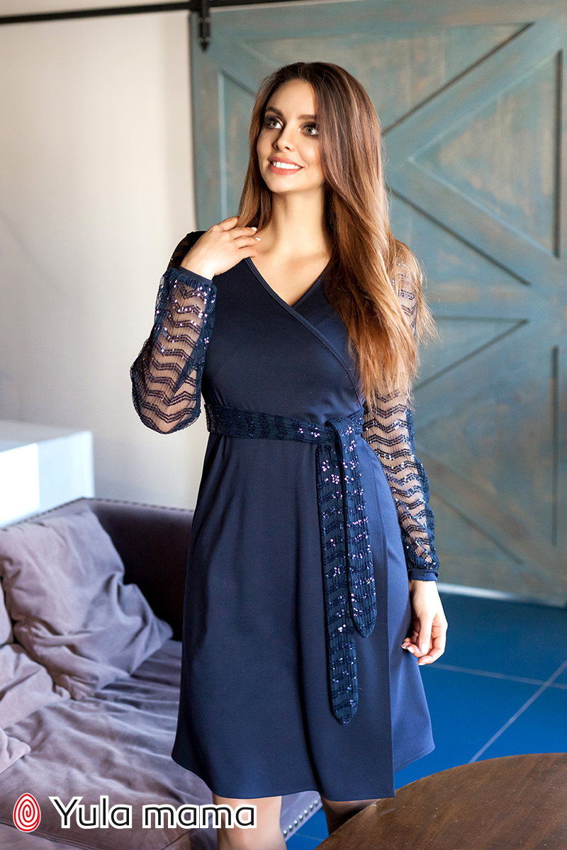 Праздничное платье на запа'х для беременных и кормящих с отделкой пайетками.