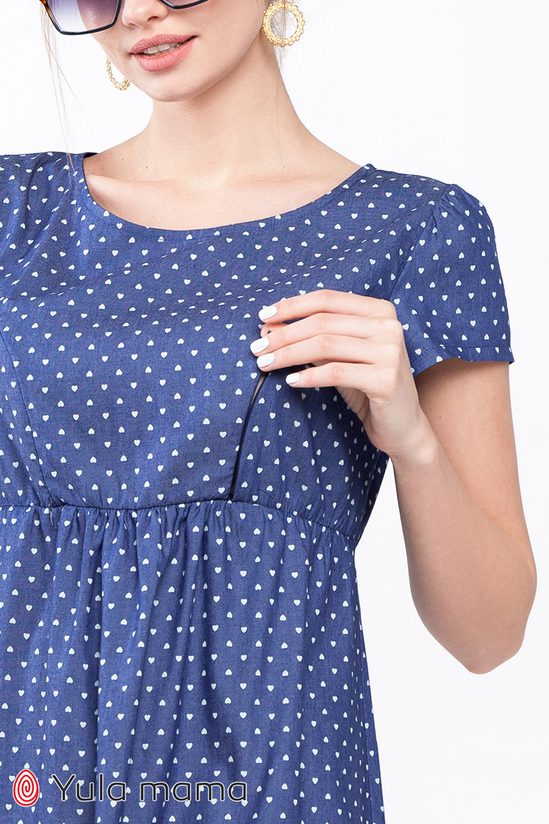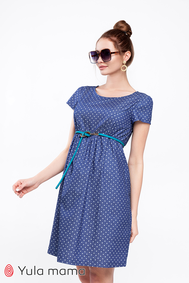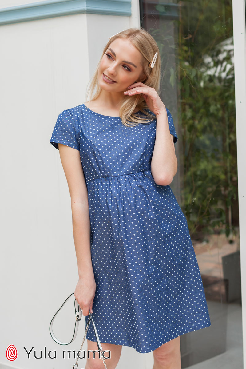 Платье для беременных и кормящих из тонкого джинса с принтом.