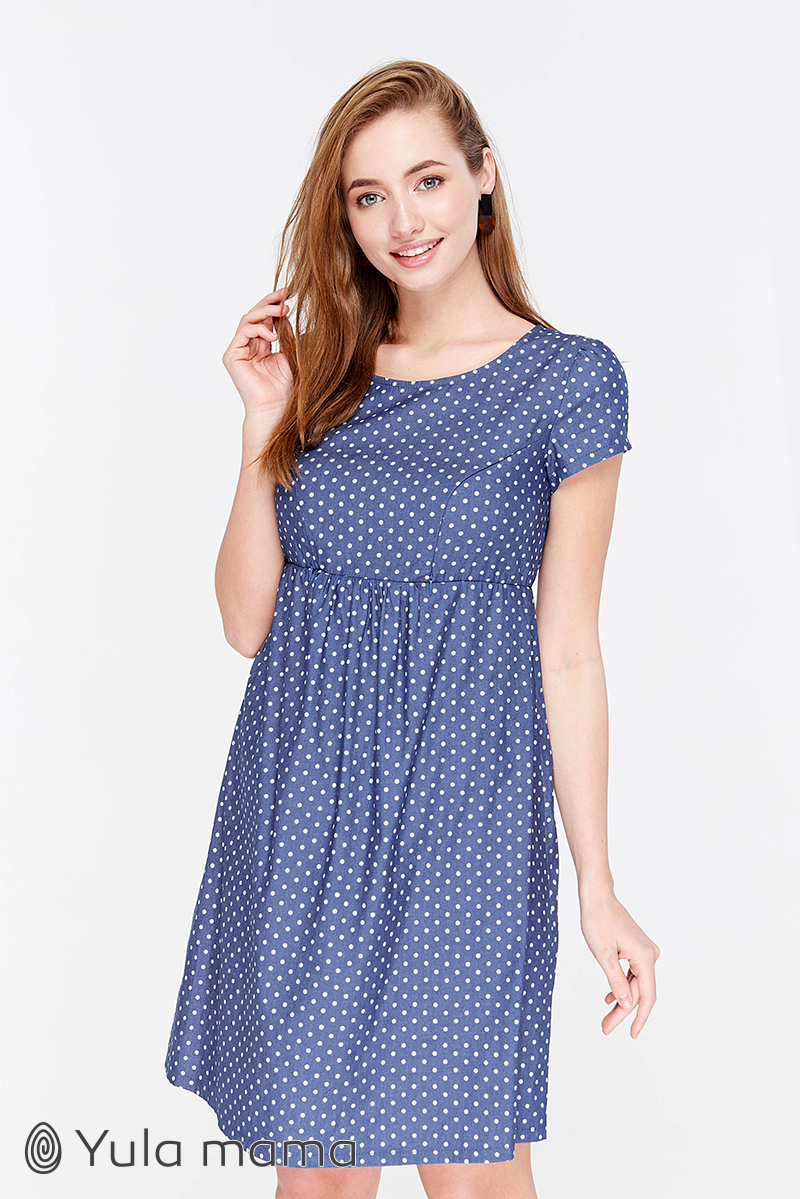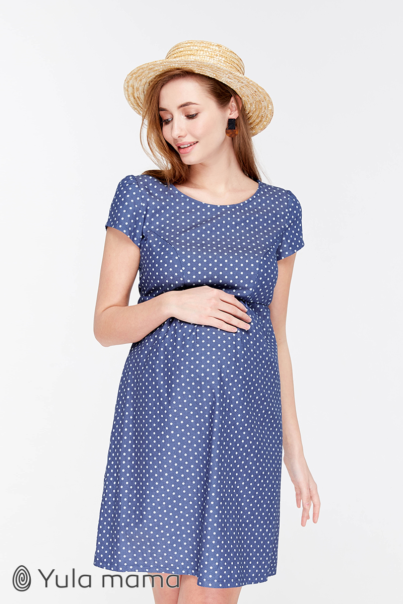 Платье для беременных и кормящих из тонкого джинса с принтом.