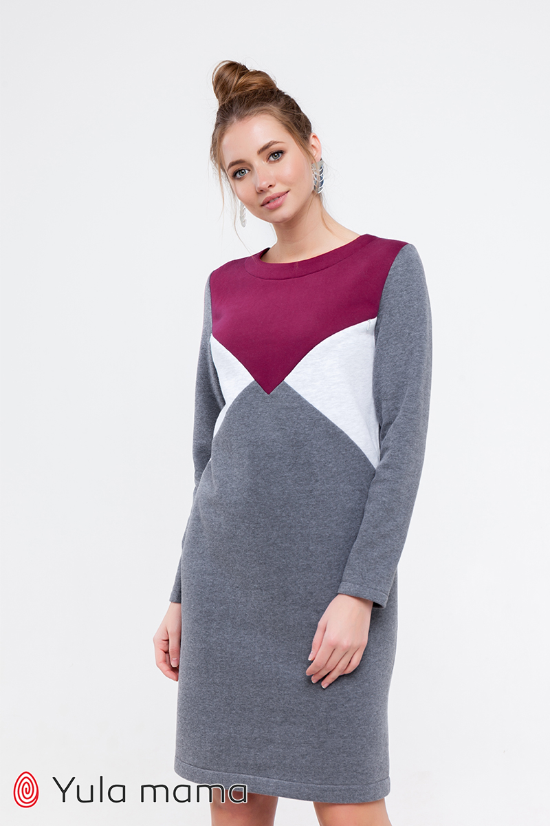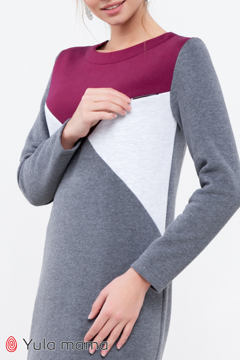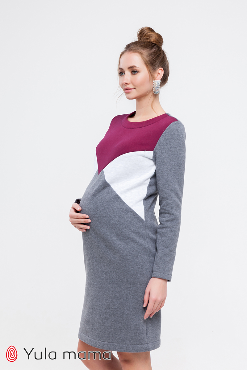 Тепла сукня для вагітних та годуючих у стилі color-block із трикотажу з начісом.