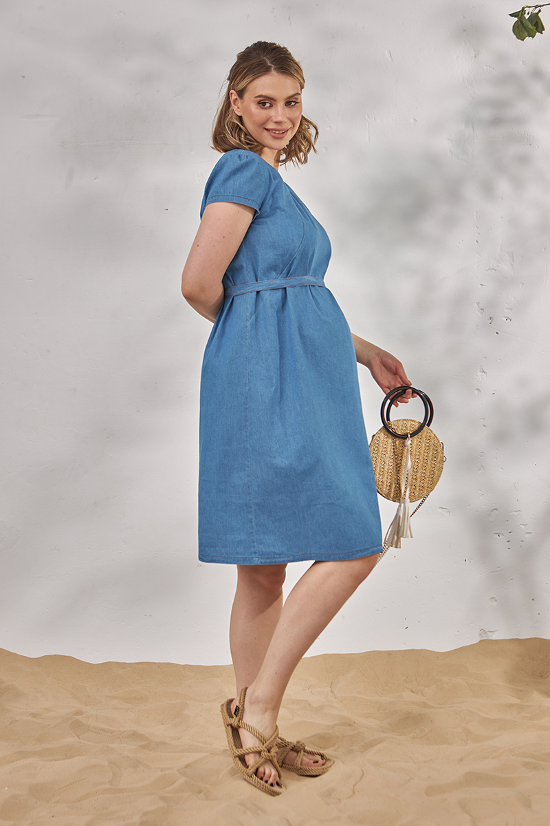 Силует: А-подібний силует з напівоблягаючим верхом і вільним низом, зі знімним поясом.