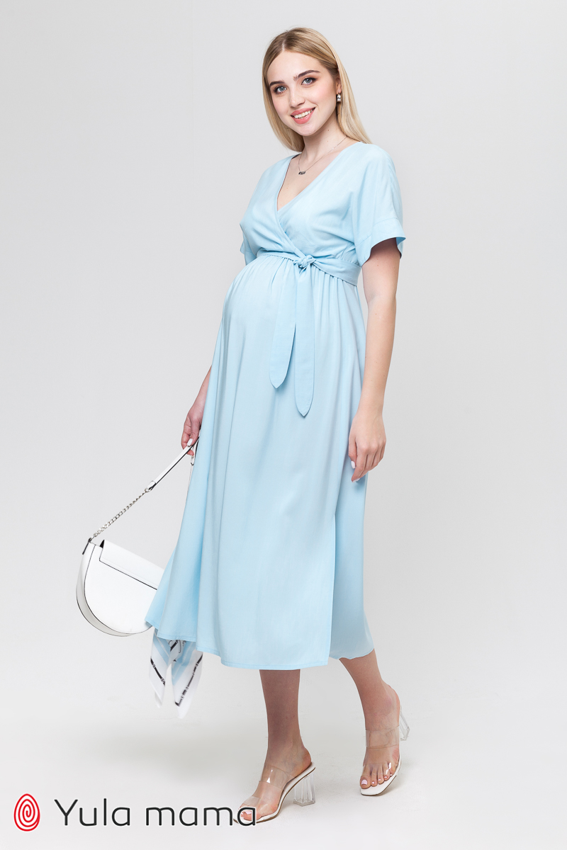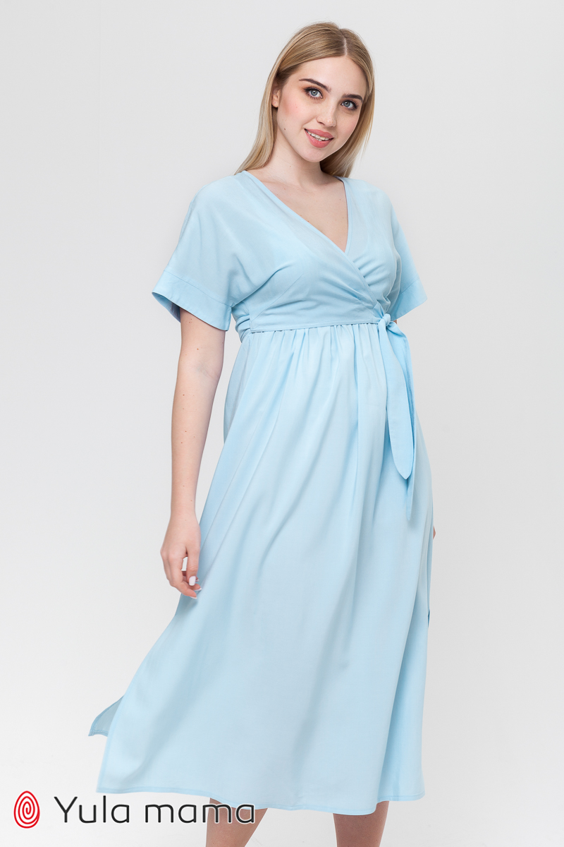 Сукня для вагітних та годуючих з ліфом на запа́х зі штапеля з принтом.