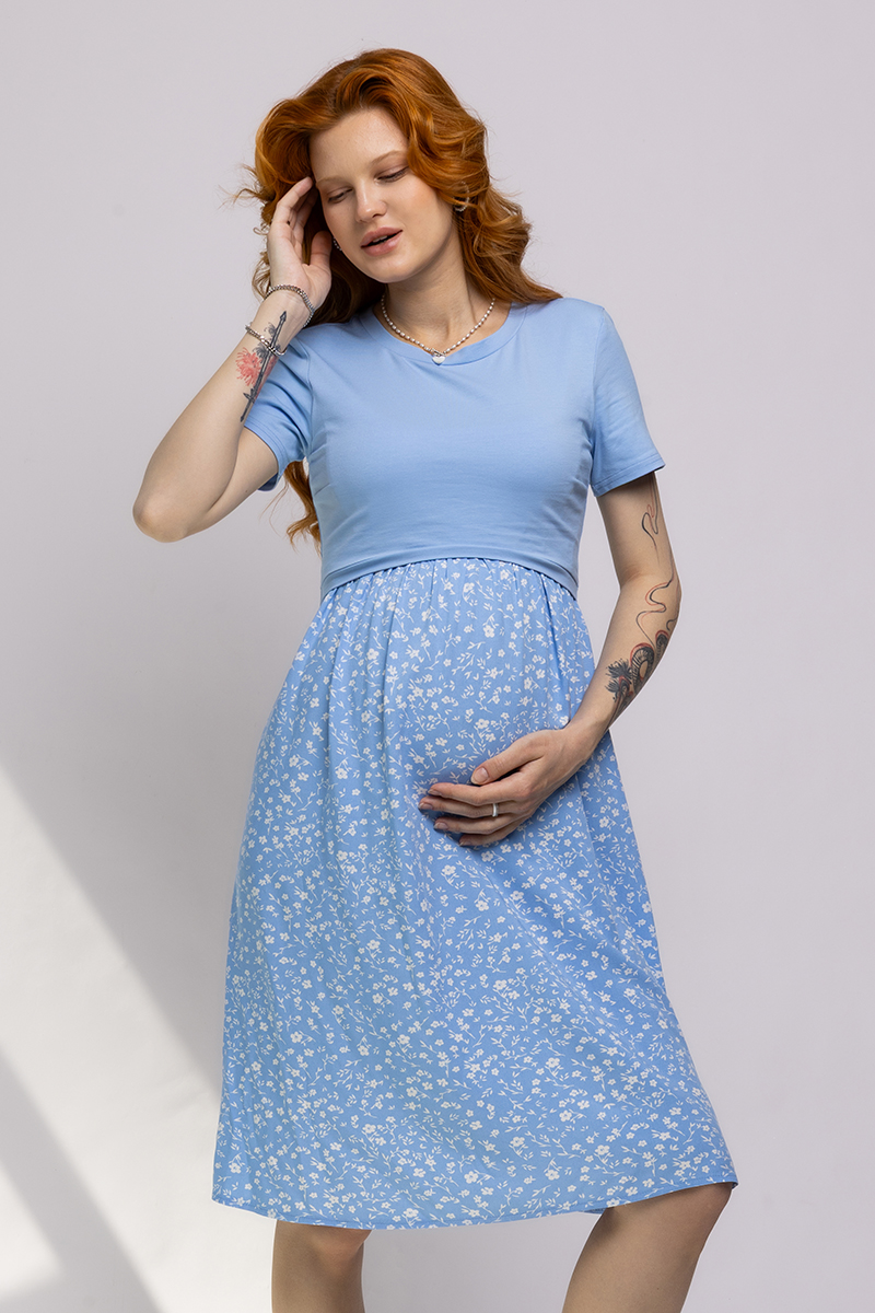 Сукня для вагітних та годуючих з трикотажним ліфом та легкою спідницею.