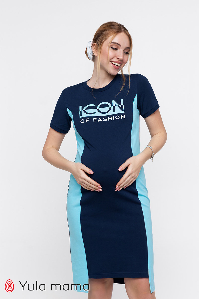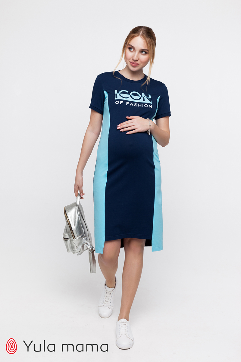 Трикотажне плаття-футболка для вагітних та годуючих з принтом на грудях.
