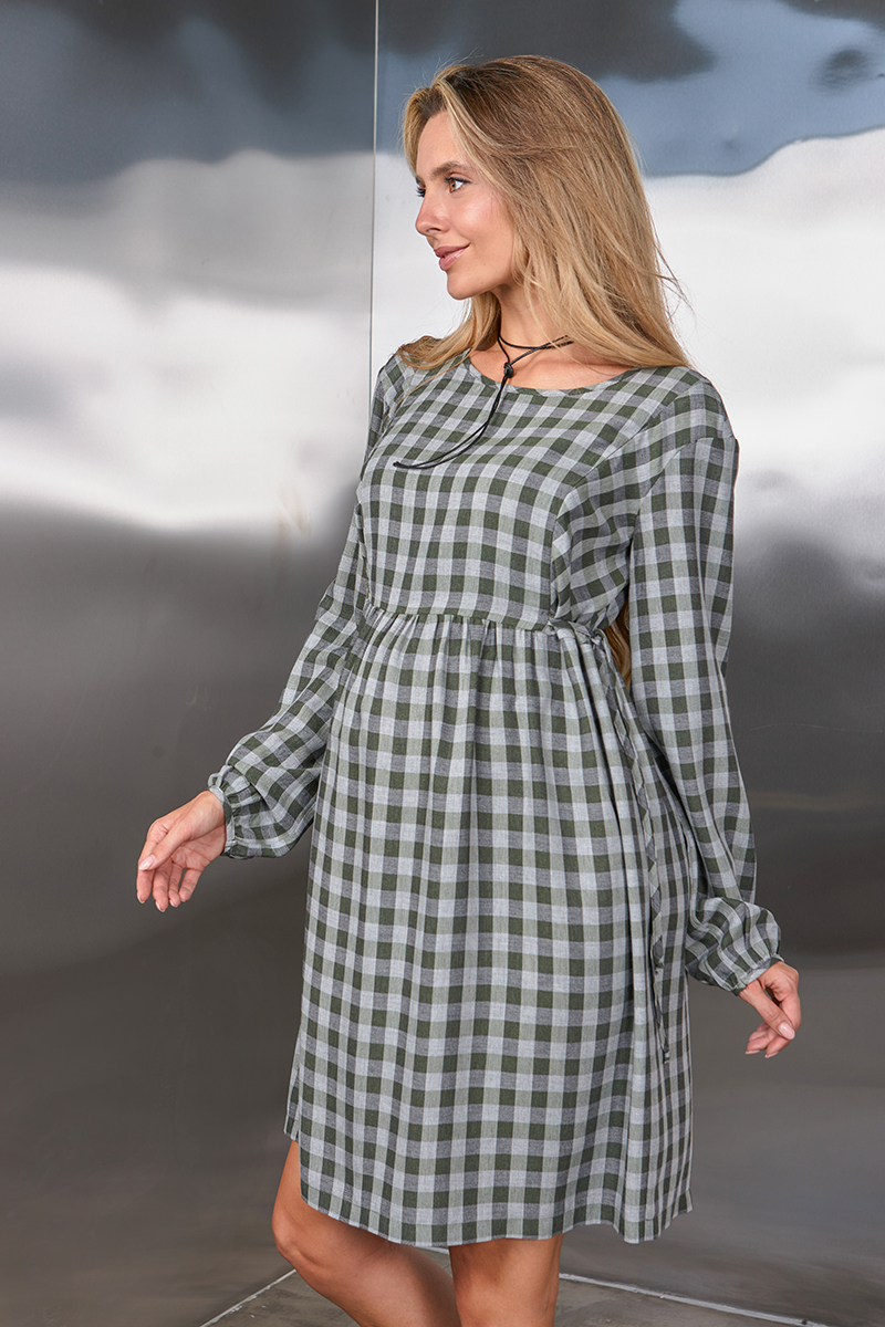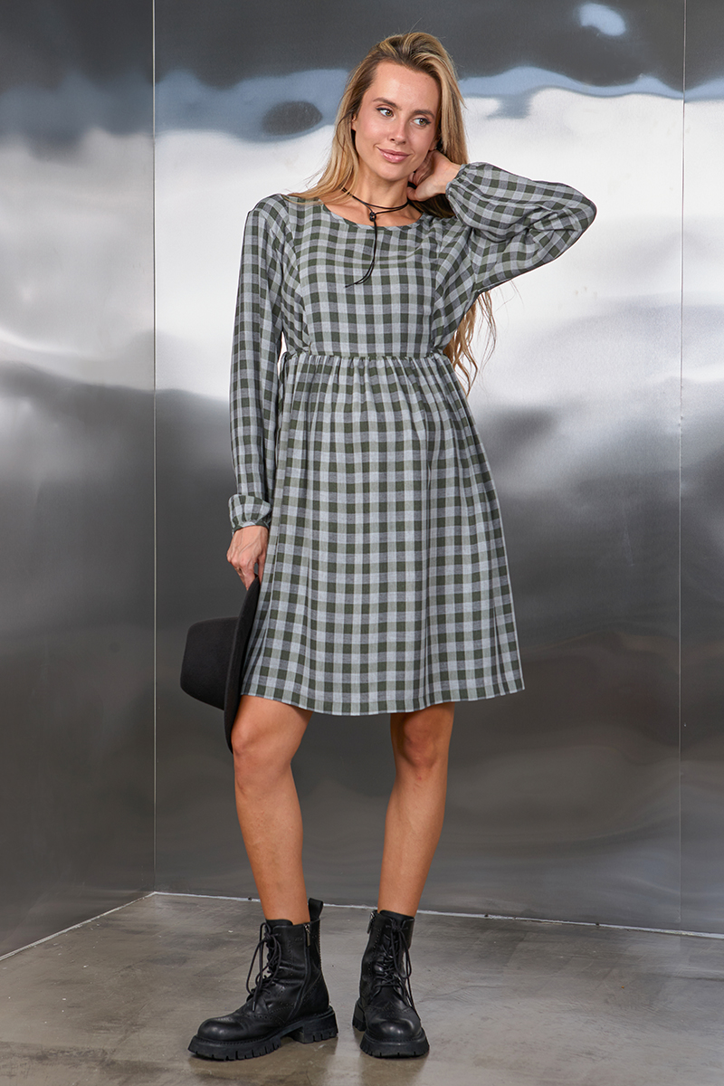 Сукня в клітку для вагітних та годуючих з плательної віскози.