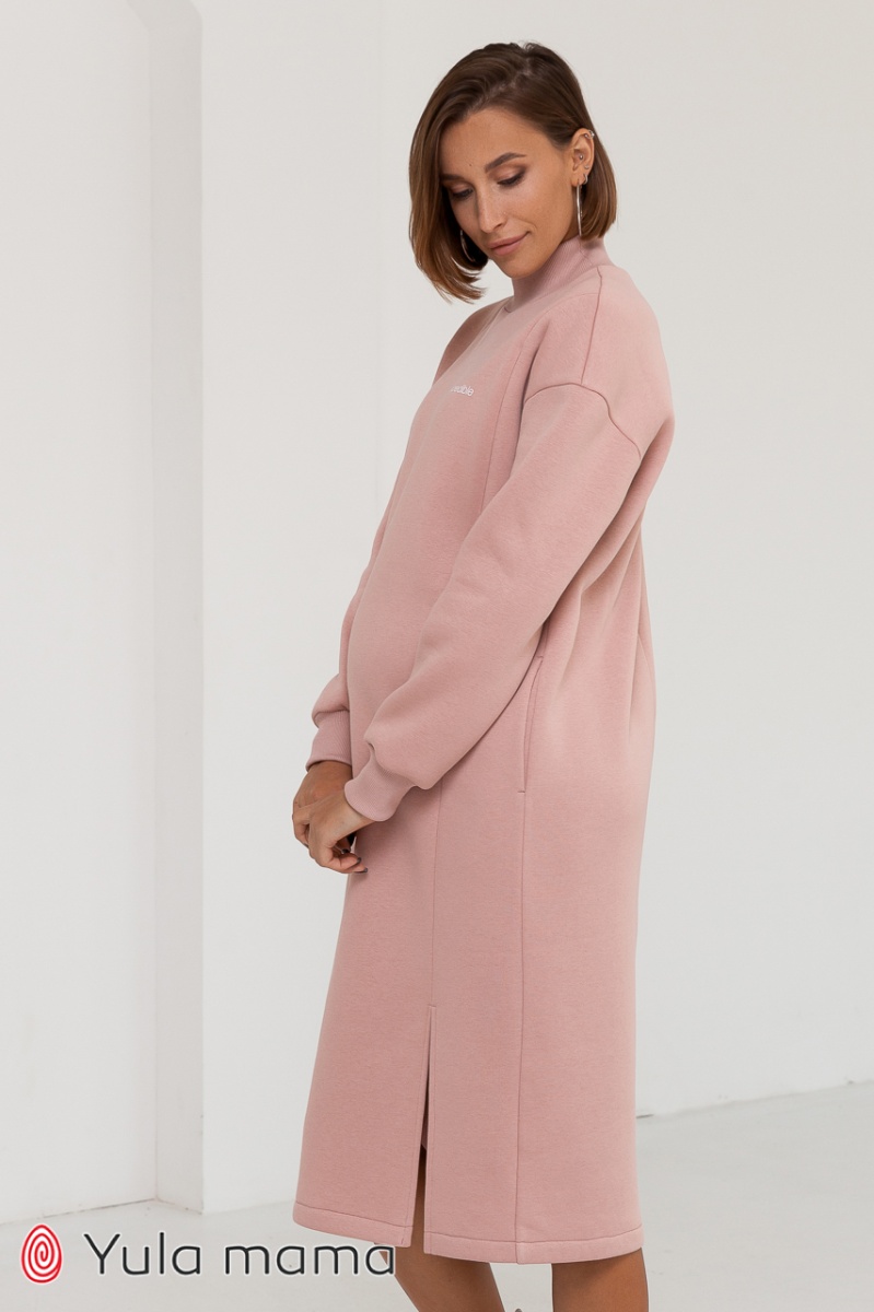 Тепла стильна сукня для вагітних та годуючих із щільного трикотажу з начісом.