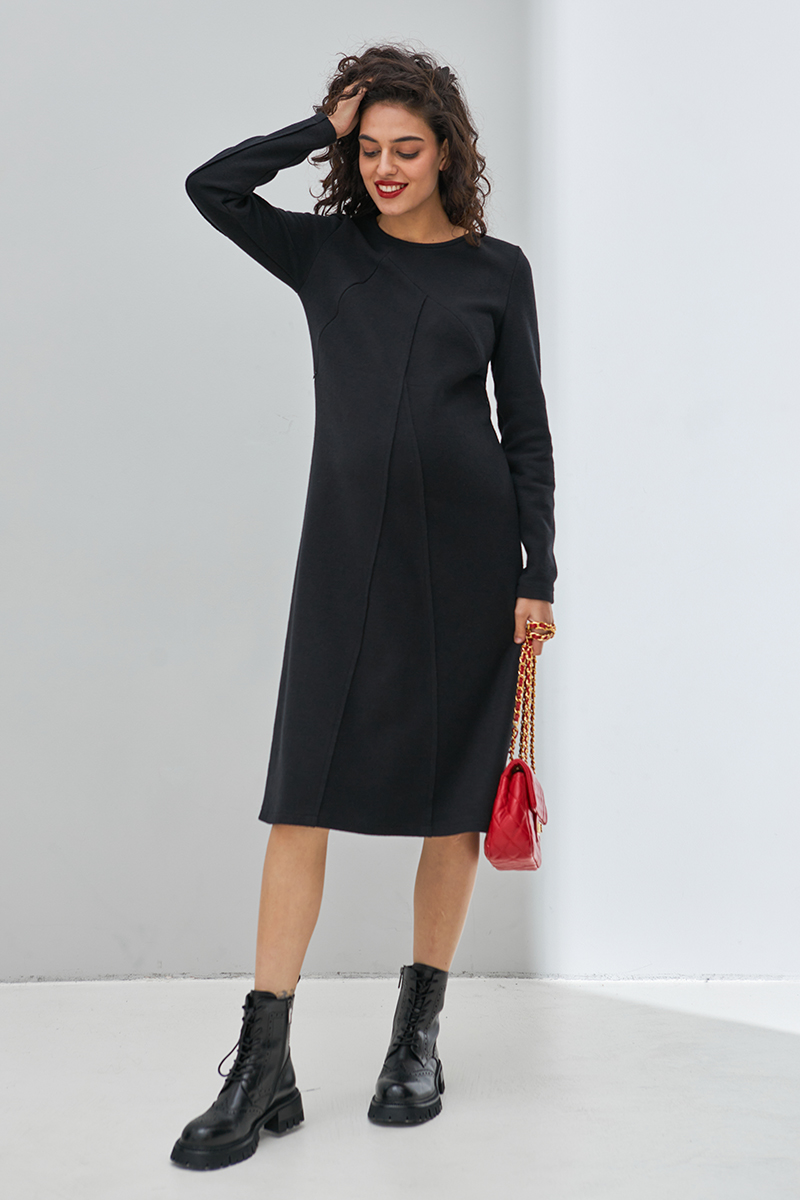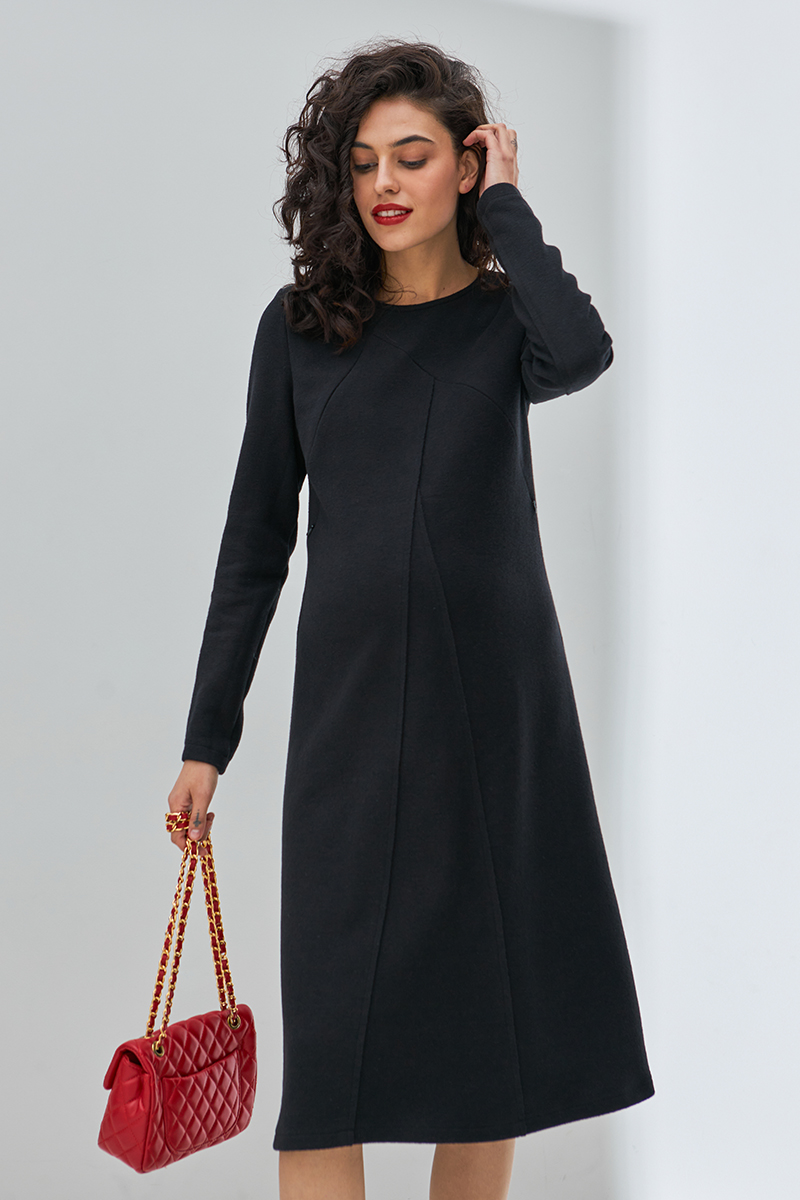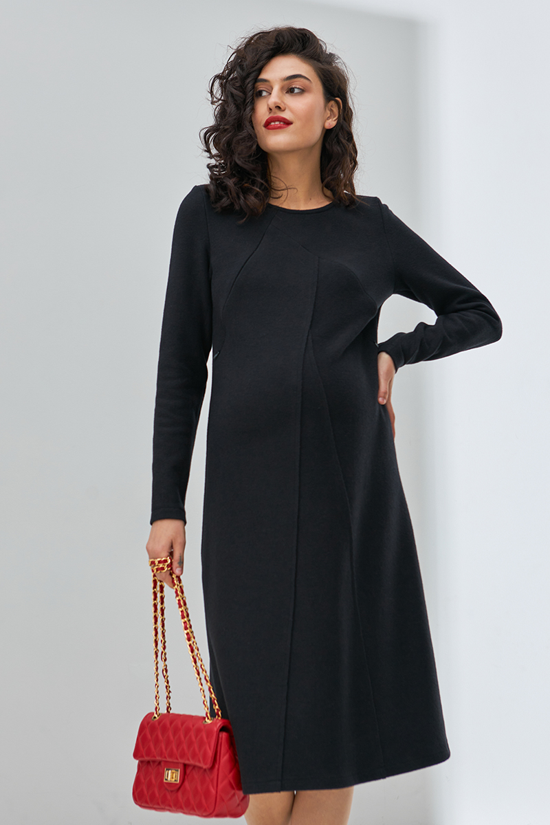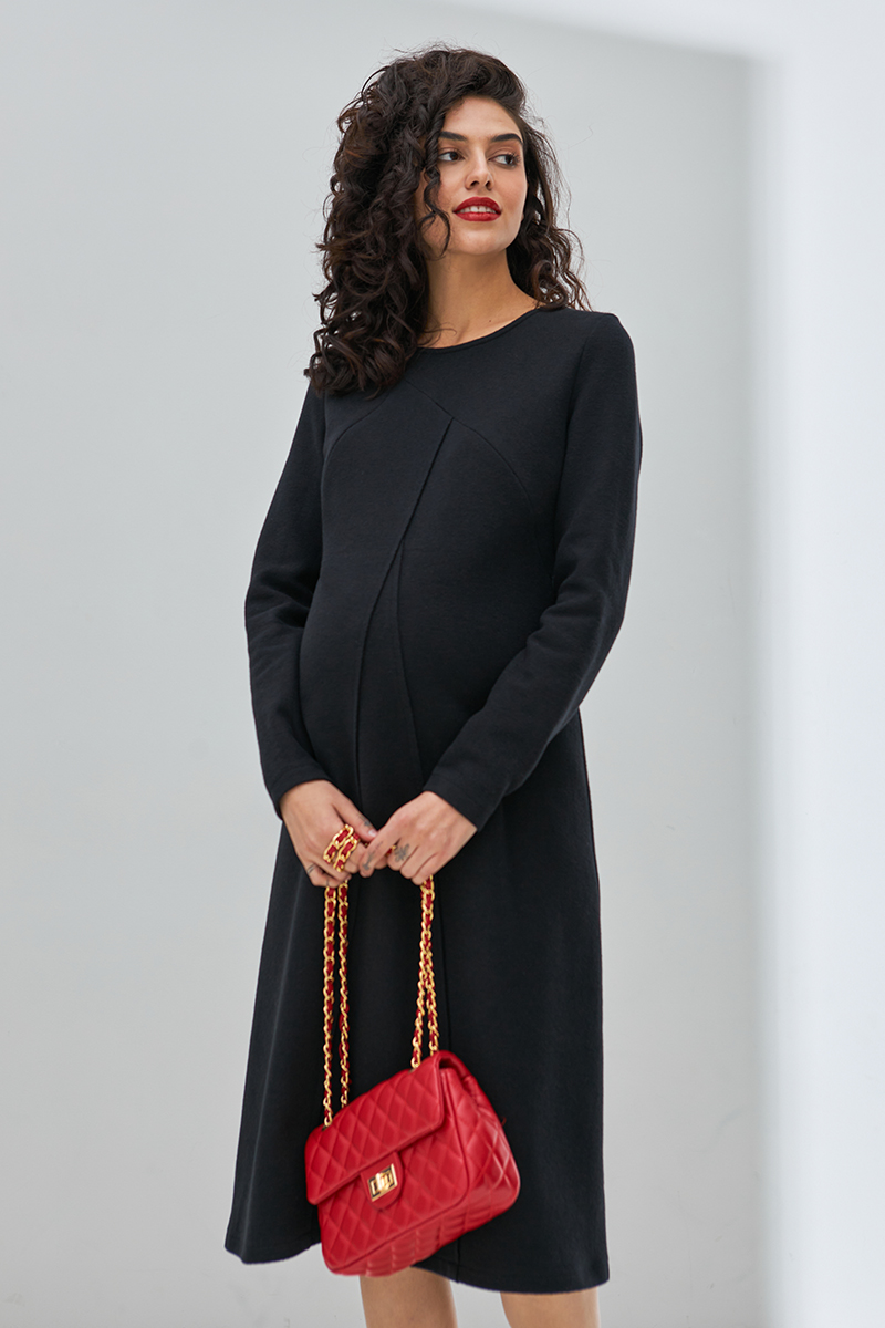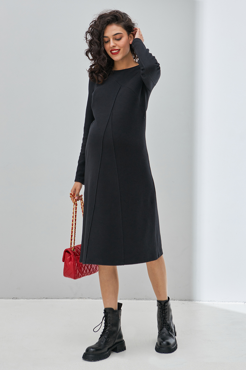 Жіноча сукня міді для вагітних та годуючих із теплого трикотажу.