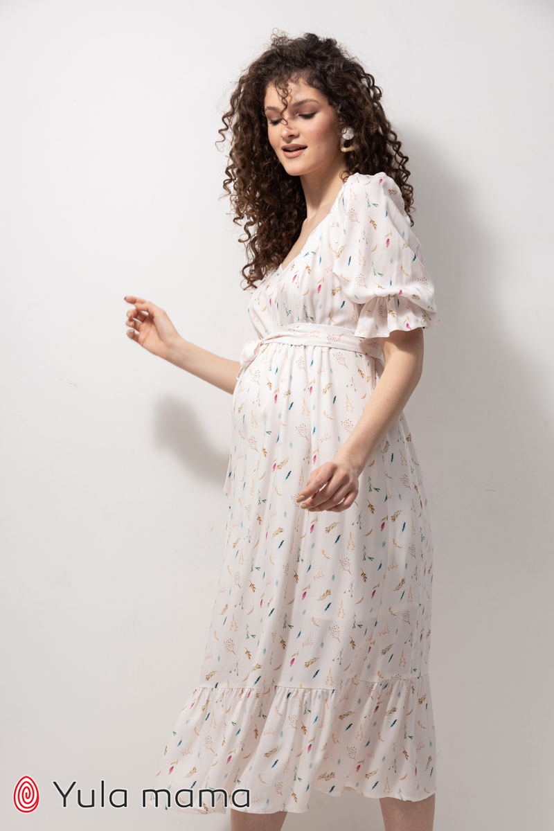 Сукня для вагітних та годуючих з акцентними рукавами-буфами.