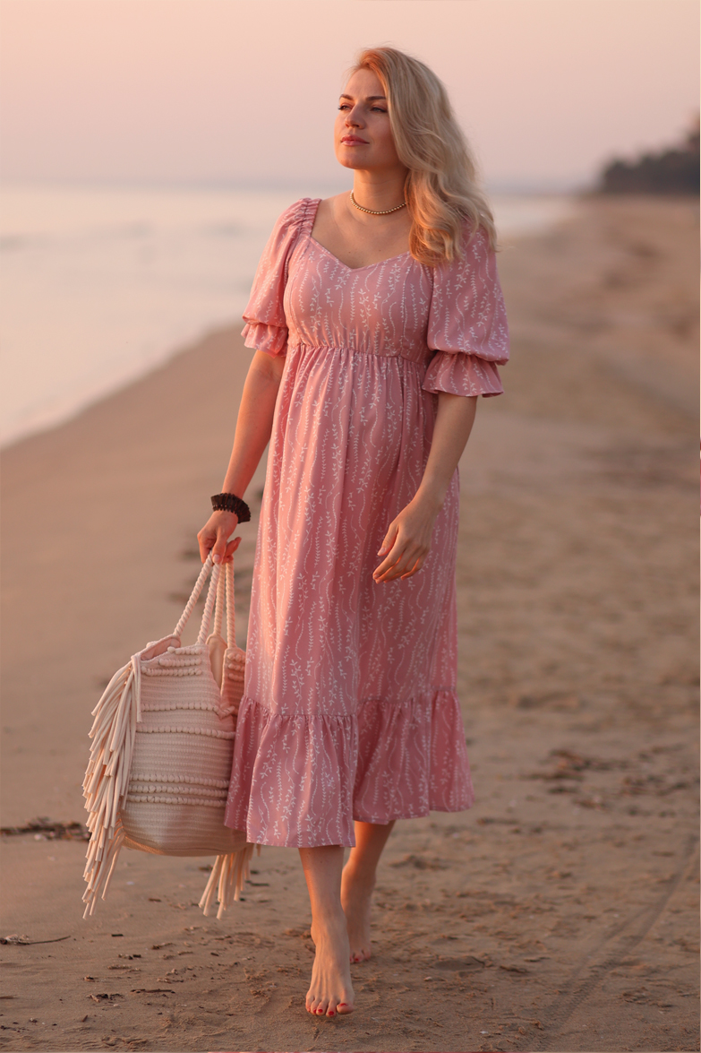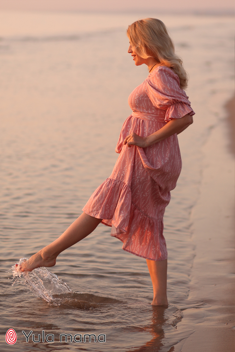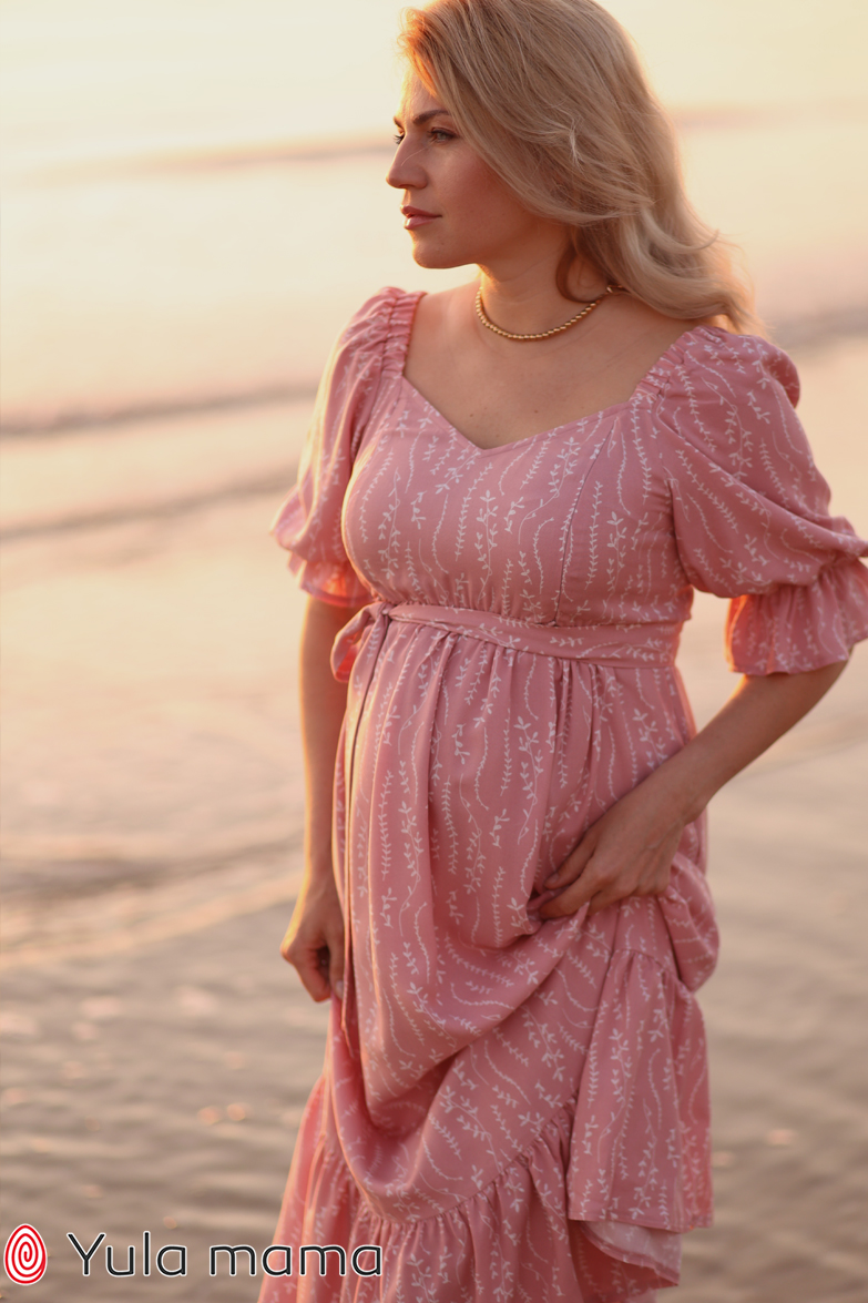 Сукня для вагітних та годуючих з акцентними рукавами-буфами.