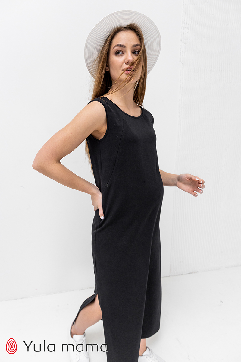 Сукня-майка для вагітних та годуючих з трикотажу з V-подібним вирізом по спинці.