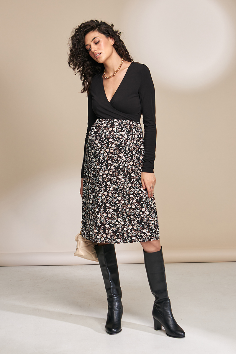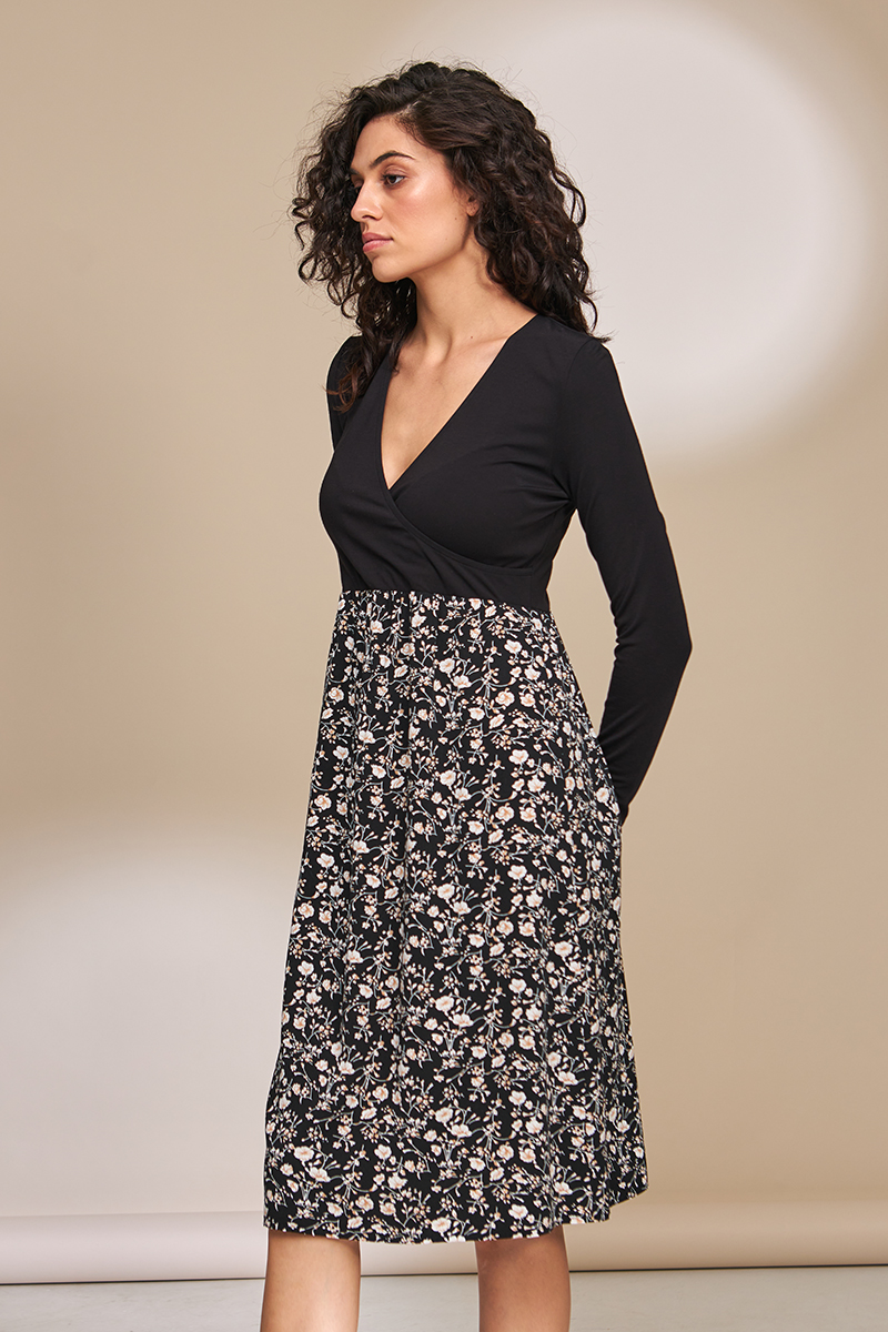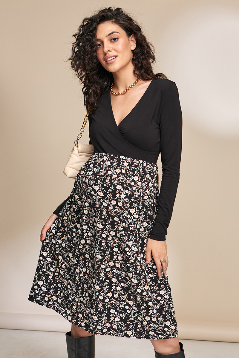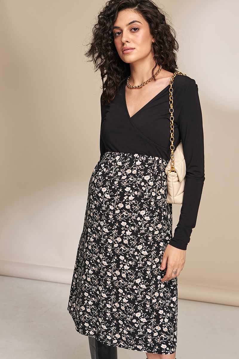 Святкове плаття для вагітних і годуючих з трикотажним ліфом і спідницею із щільного штапелю.