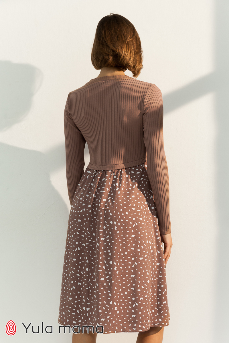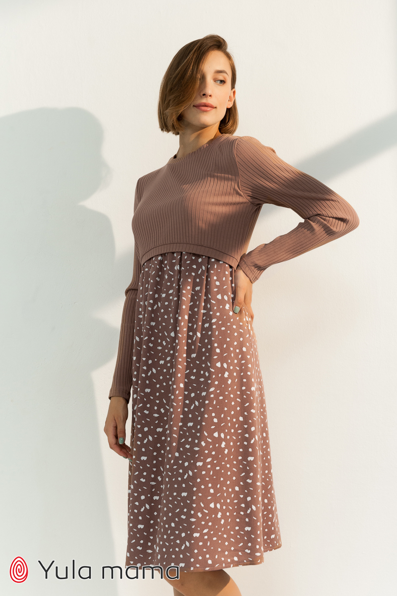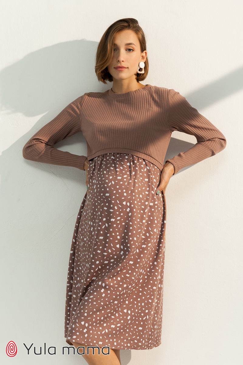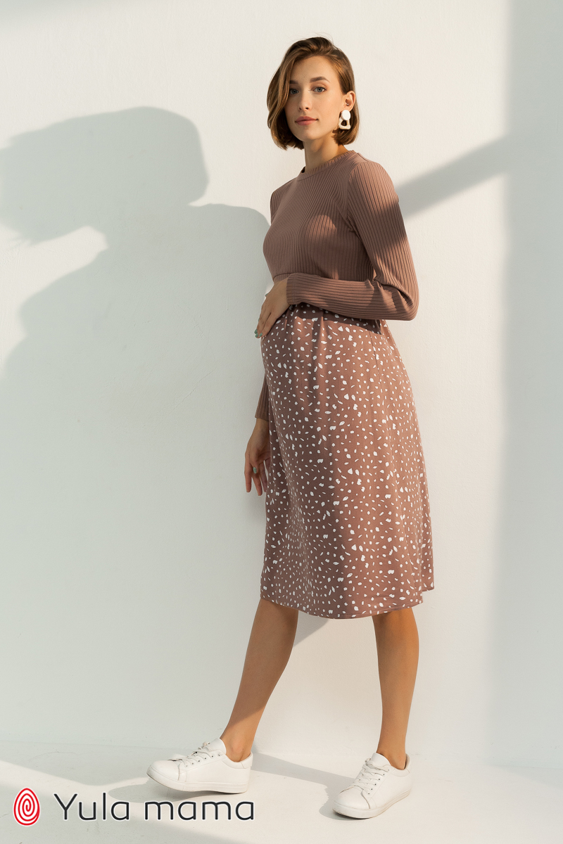 Платье для беременных и кормящих c трикотажным лифом и юбкой из плотного штапеля.