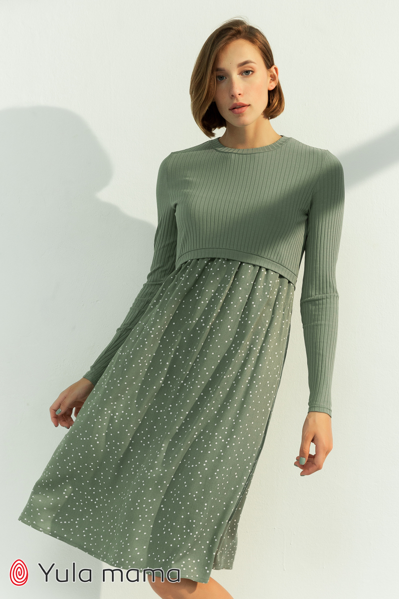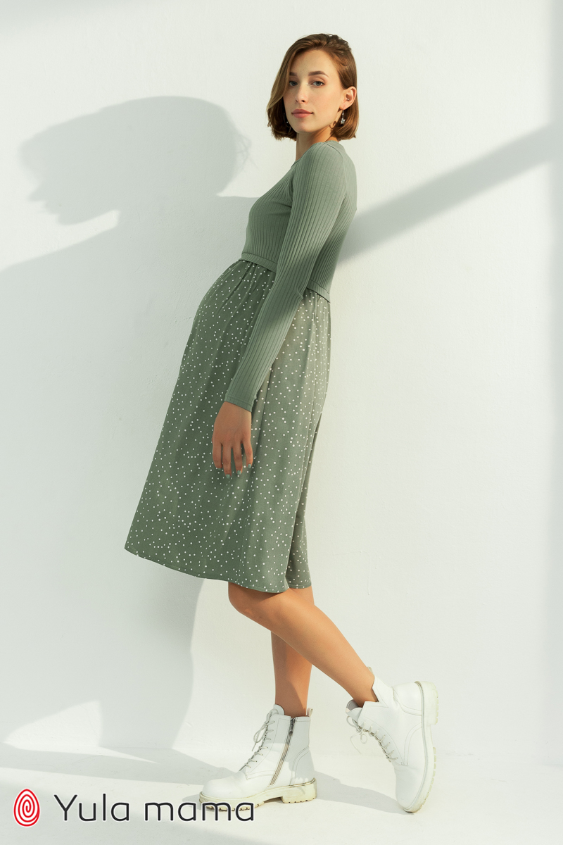 Сукня для вагітних та годуючих з трикотажним ліфом та спідницею із щільного штапелю.