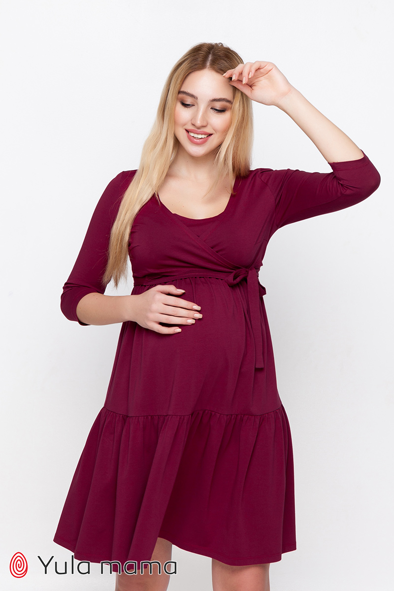 Святкова сукня з каскадними воланами для вагітних та годуючих з трикотажу.