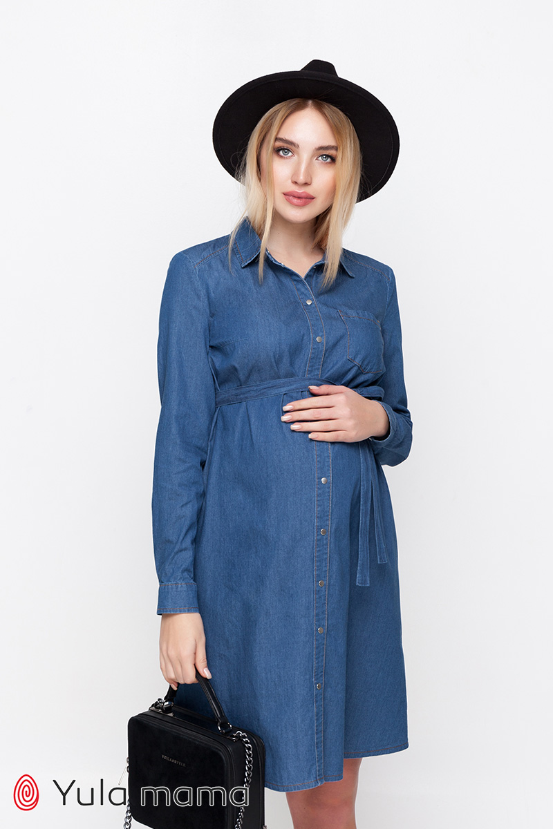 Плаття-сорочка для вагітних та годуючих з тонкого джинсу.