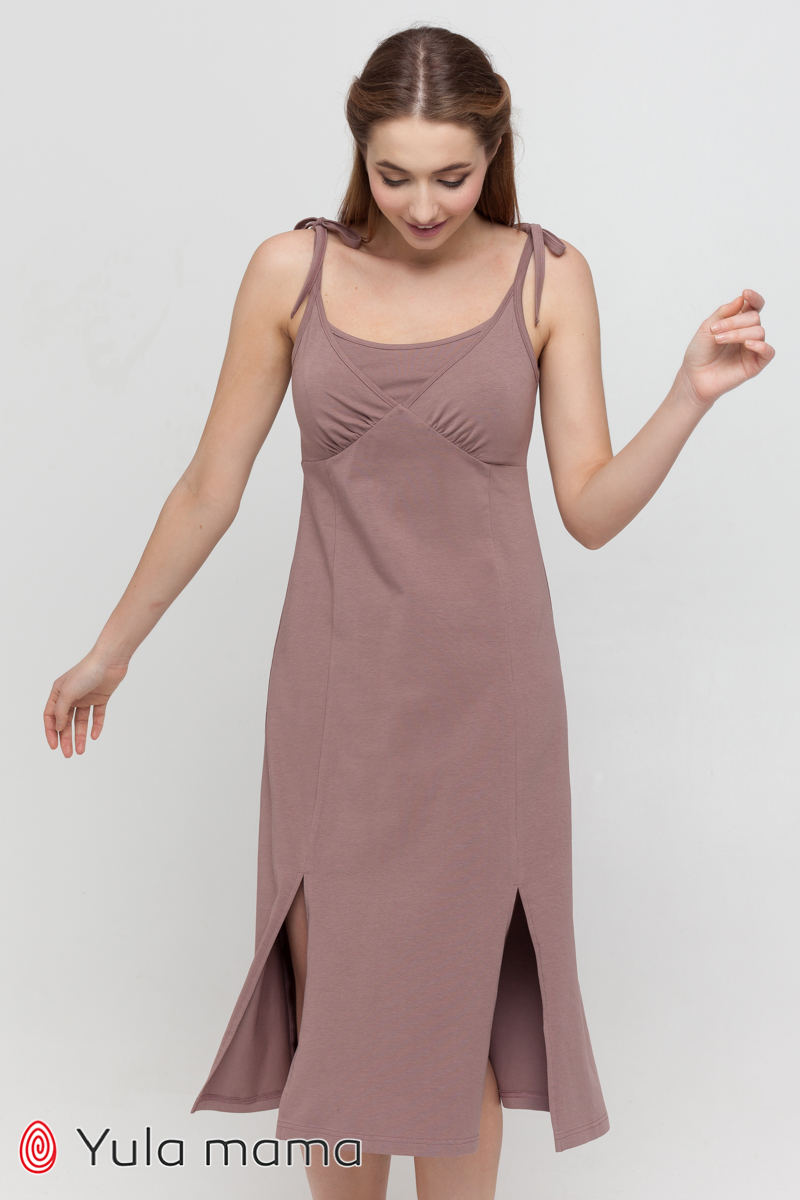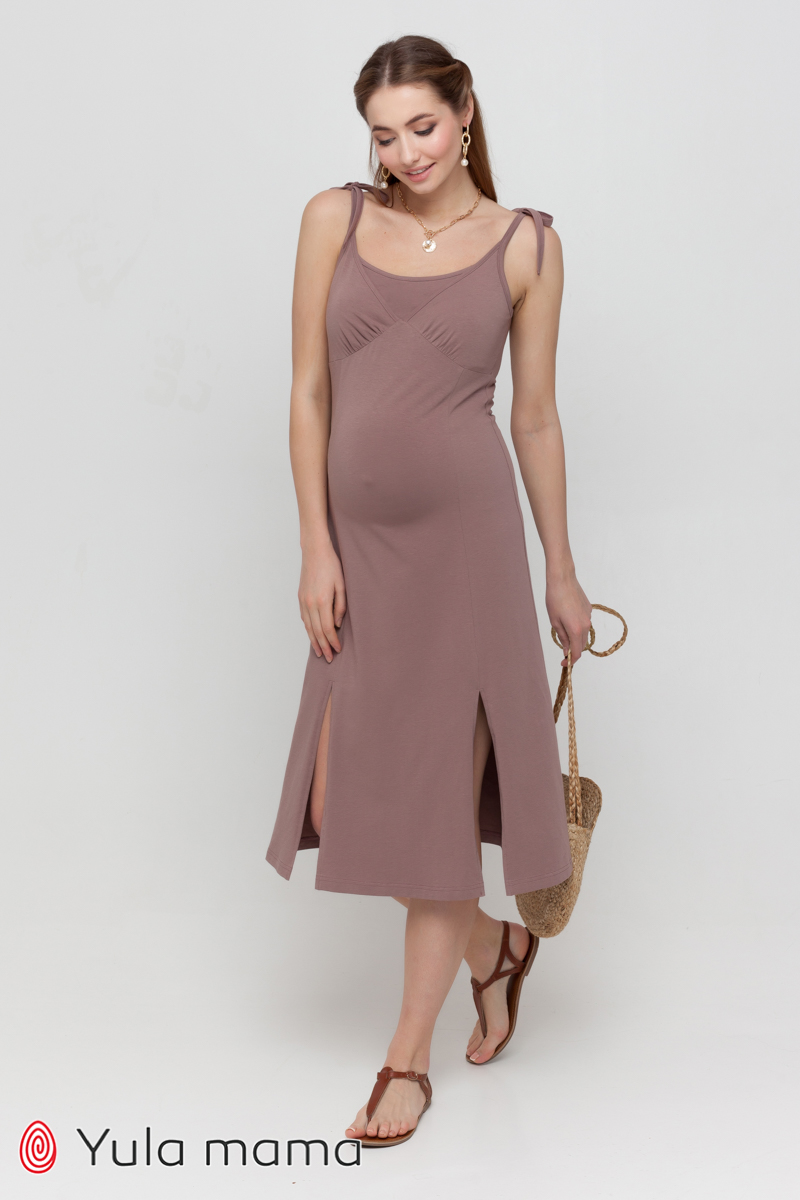 Молодіжний сарафан для вагітних та годуючих з бретелями на зав'язках та двома розрізами.