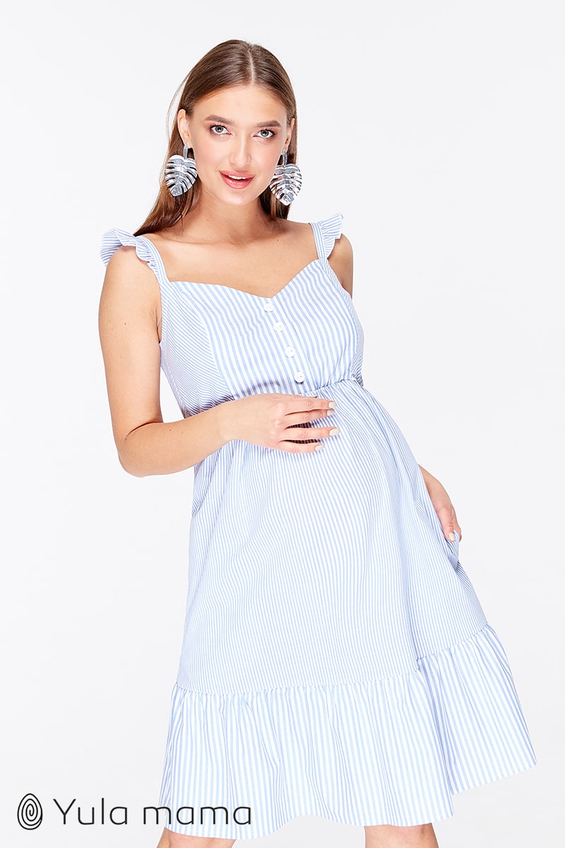 Сарафан для вагітних та годуючих з комбінації стрейчевого попліну в смужку.