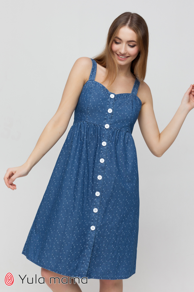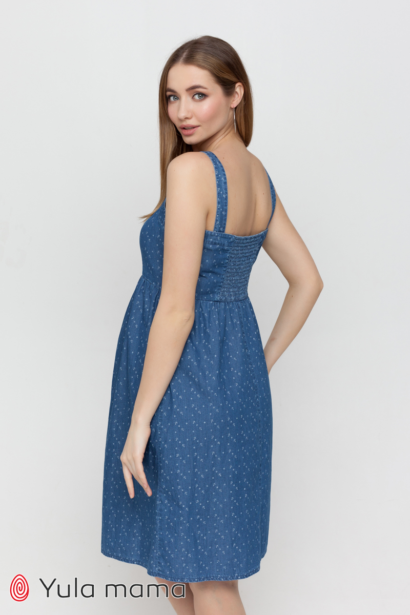 Джинсовий сарафан міді для вагітних та годуючих з регульованими бретелями.