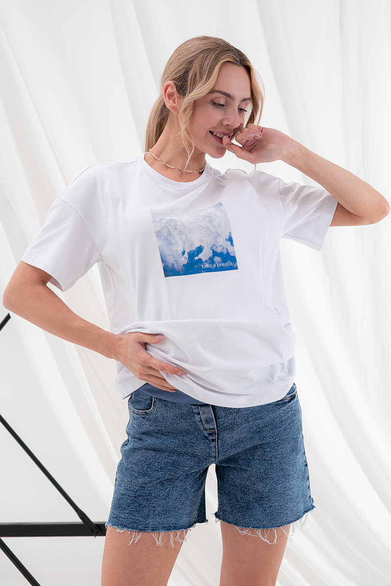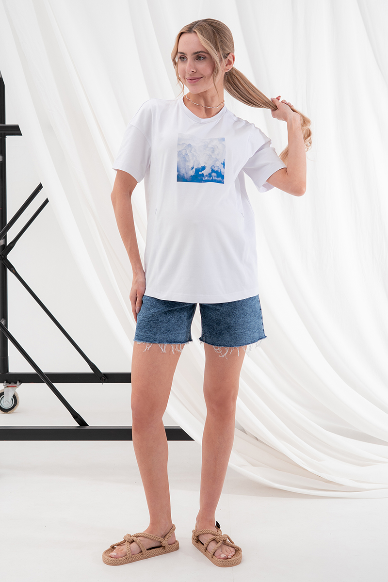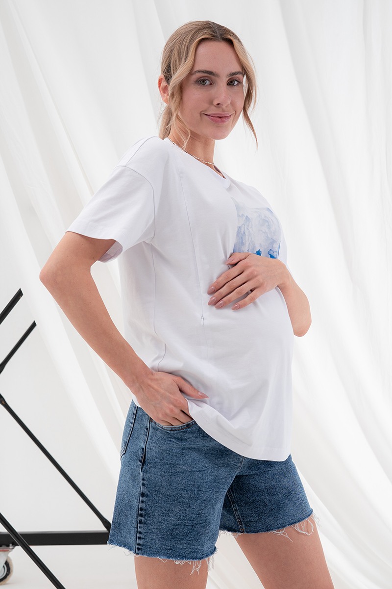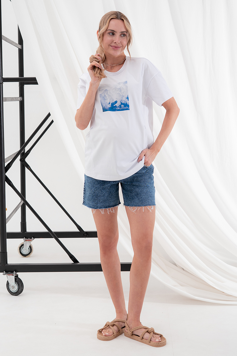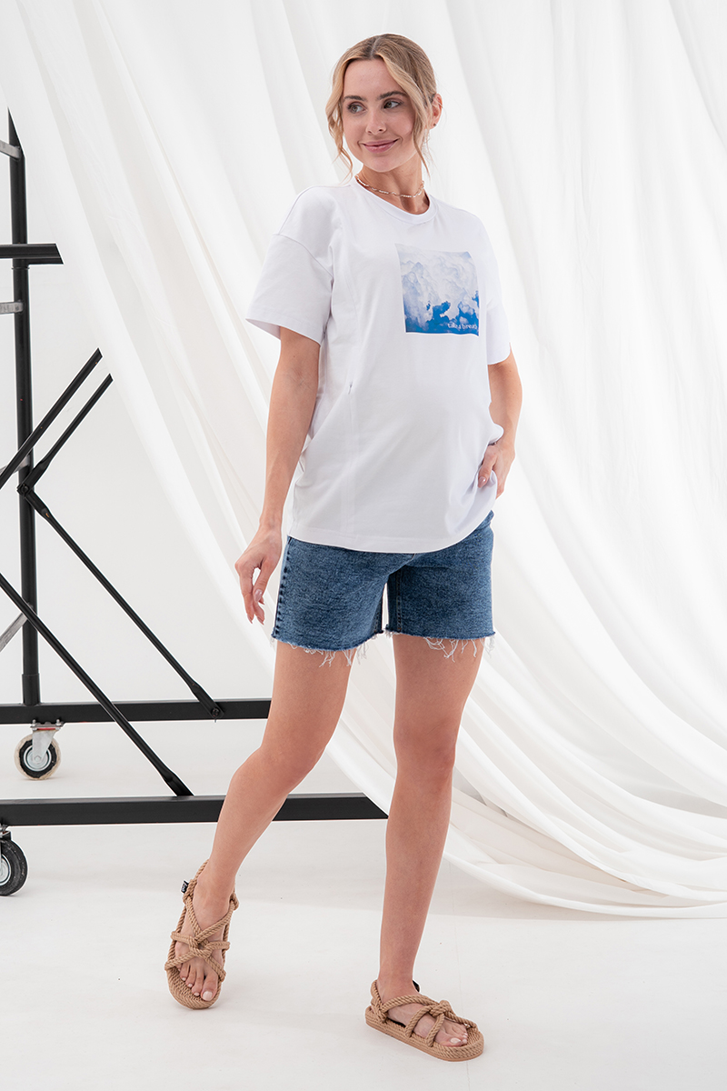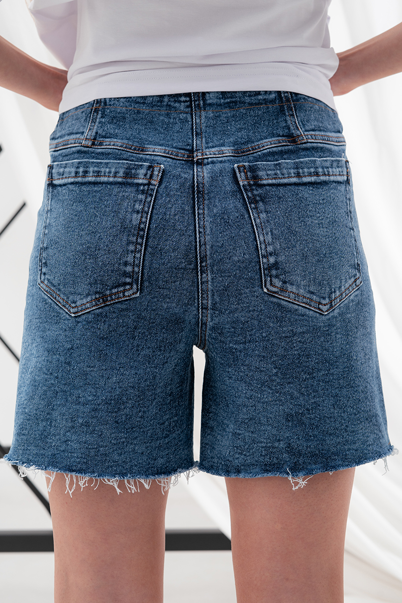 Вільні шорти для вагітних у повсякденному стилі із джинсу з відкритими зрізами внизу.