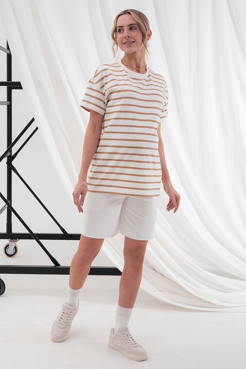 Вільні шорти для вагітних у повсякденному стилі з відкритими зрізами внизу.