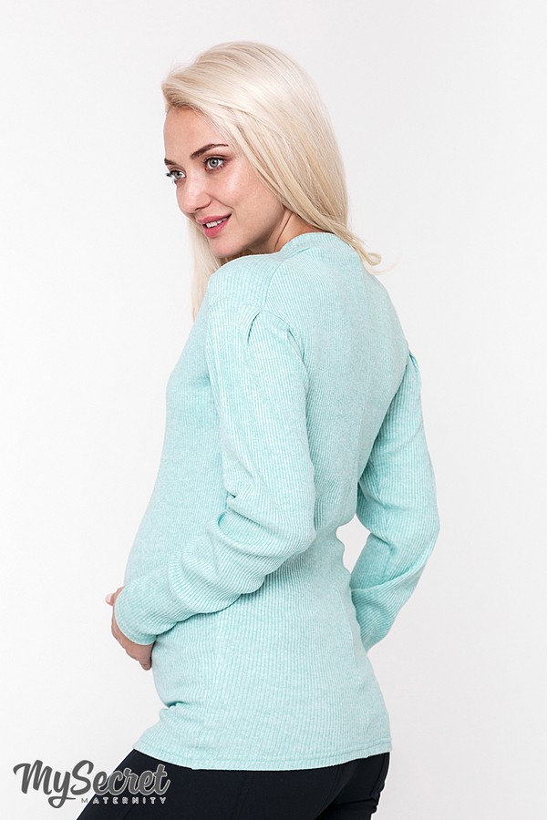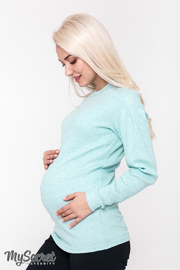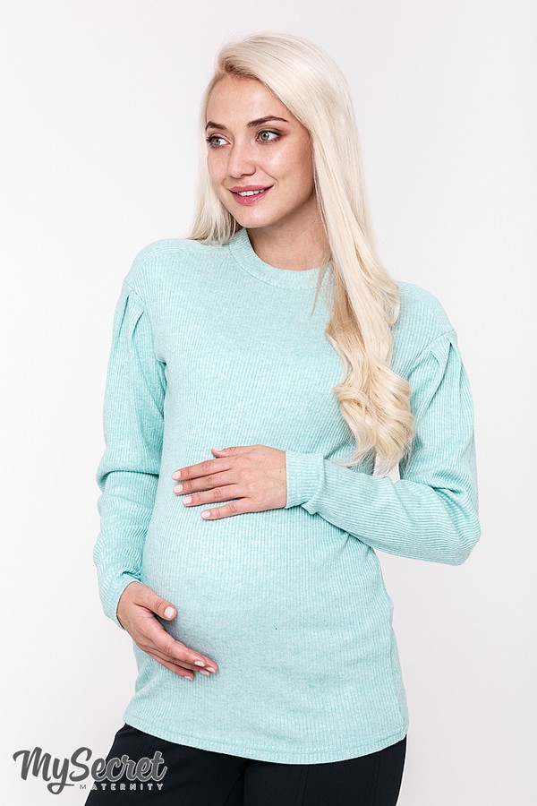 Теплий светр для вагітних із вовняного трикотажу-резинки з рукавами-буфами.