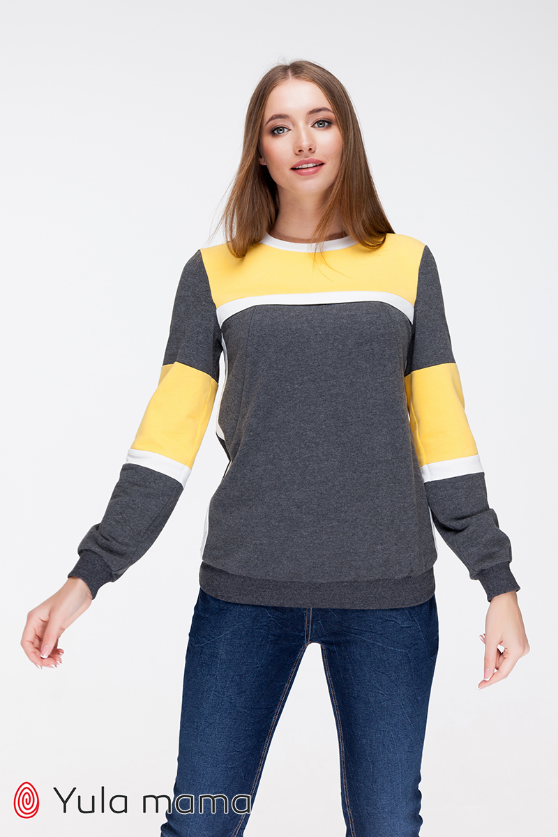 Модний трикотажний світшот для вагітних та годуючих у стилі color-block.