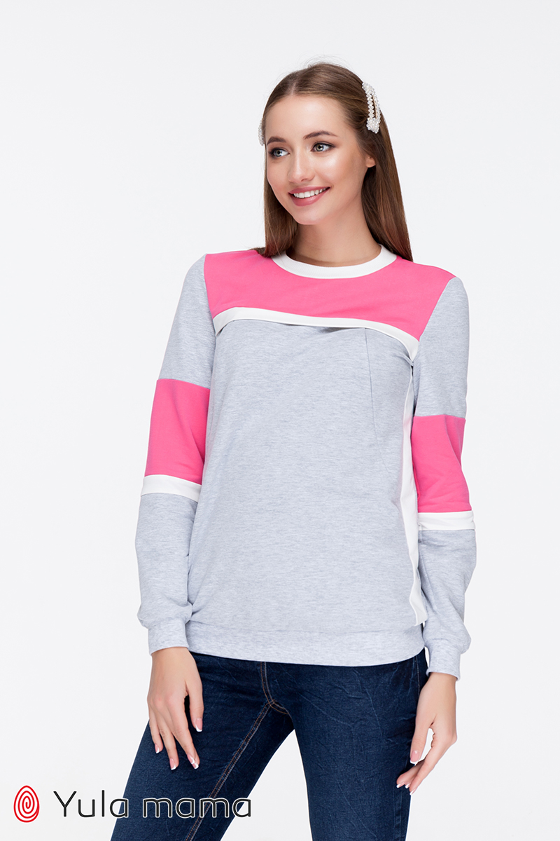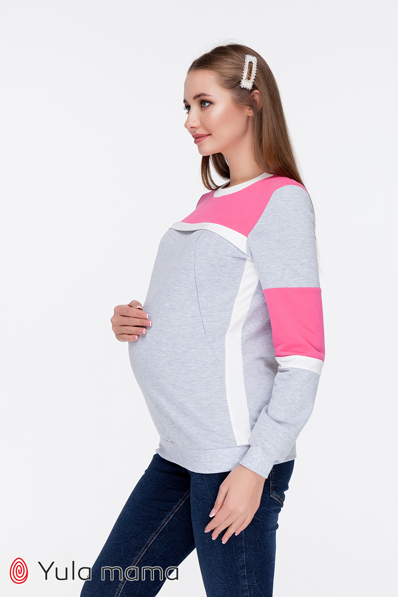 Модний трикотажний світшот для вагітних та годуючих у стилі color-block.